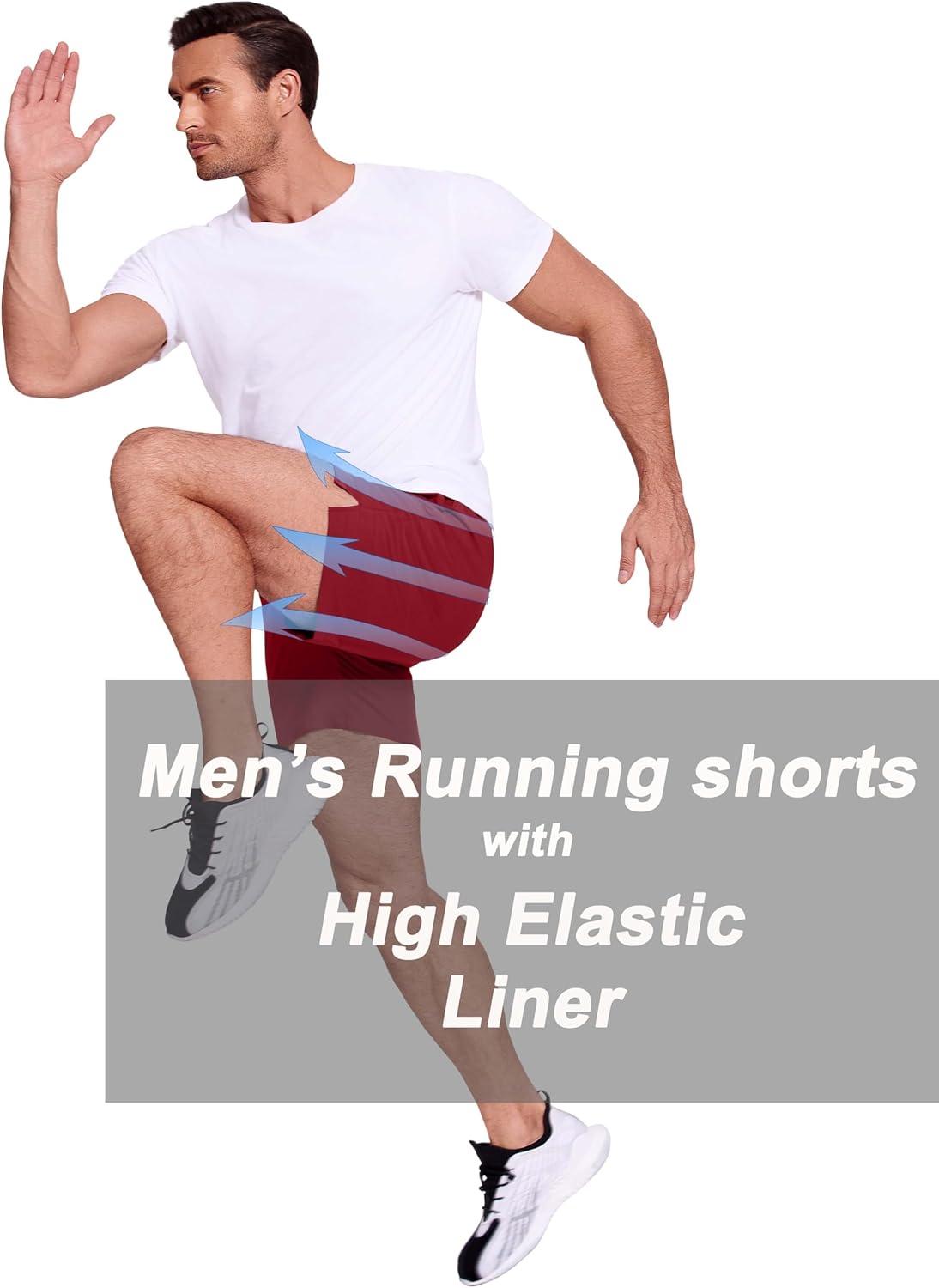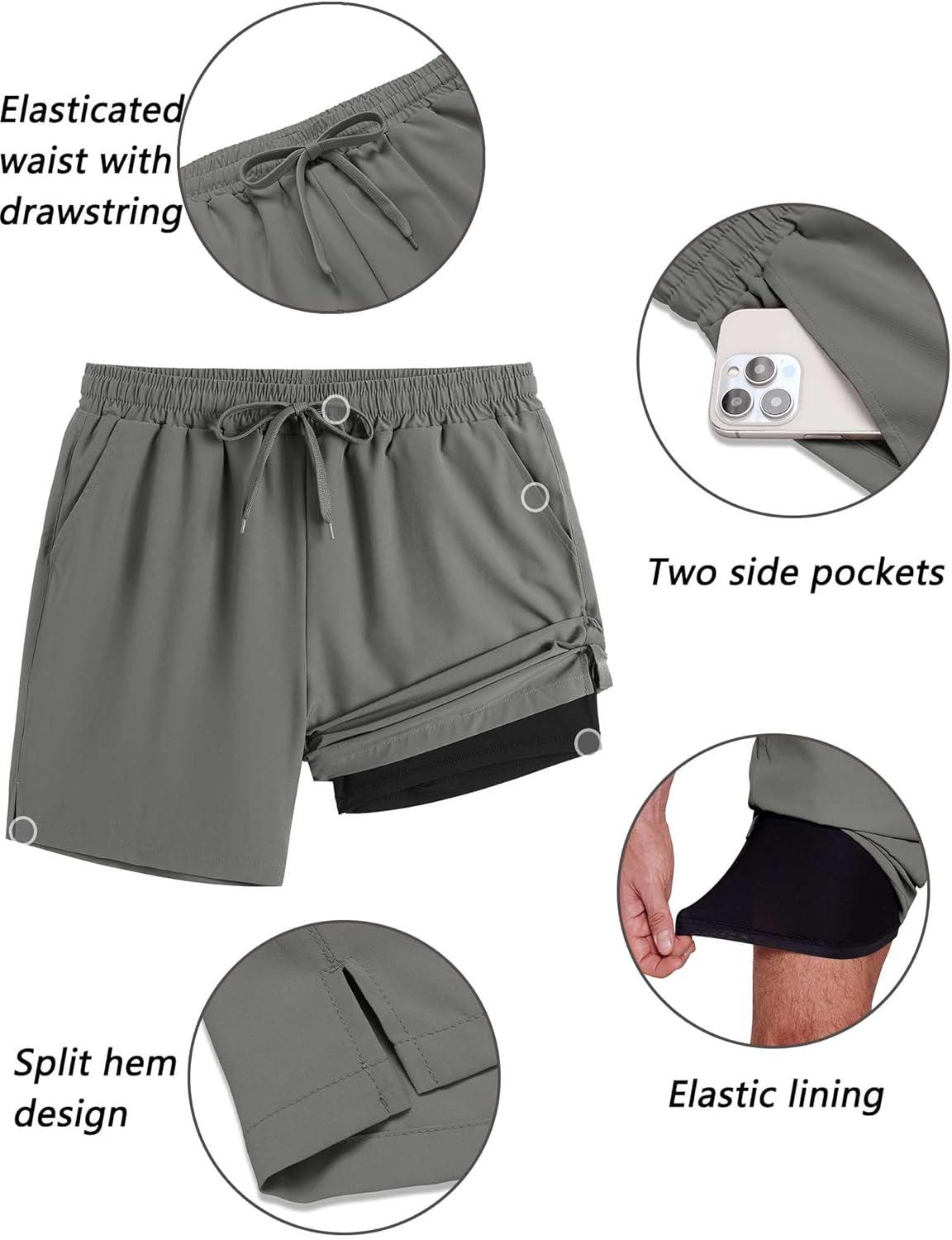 COOFANDY Men’s 2 in 1 Running Shorts 2 Pack Athletic Shorts Quick Dry Gym Training Workout Shorts with Pockets(Dark Grey/Wine Red)
