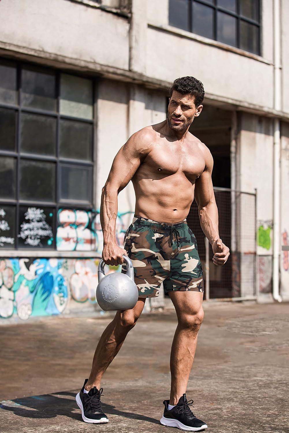 COOFANDY Men’s 2 in 1 Running Shorts 2 Pack Athletic Shorts Quick Dry Gym Training Workout Shorts with Pockets(Grey/Army Green)