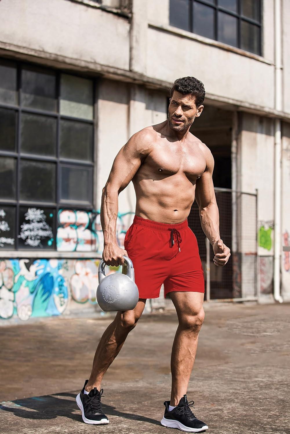 COOFANDY Men’s 2 in 1 Running Shorts 2 Pack Athletic Shorts Quick Dry Gym Training Workout Shorts with Pockets(Khaki/Grey)