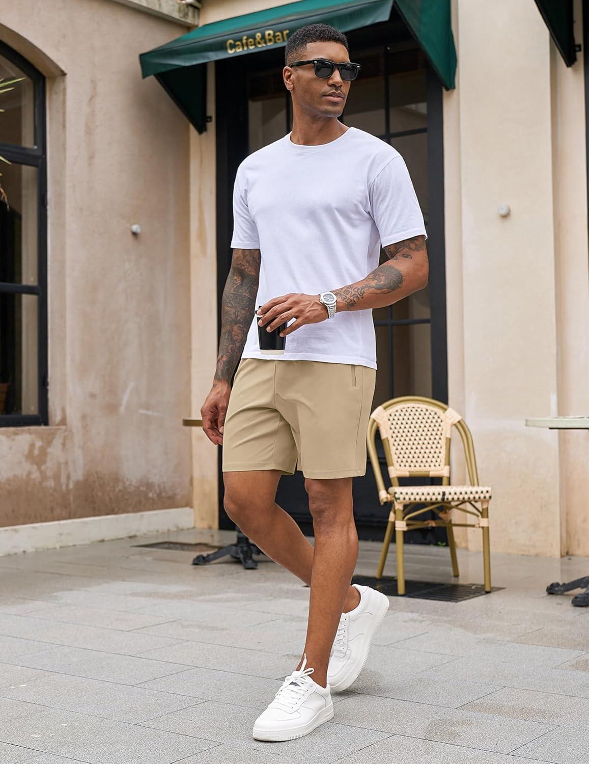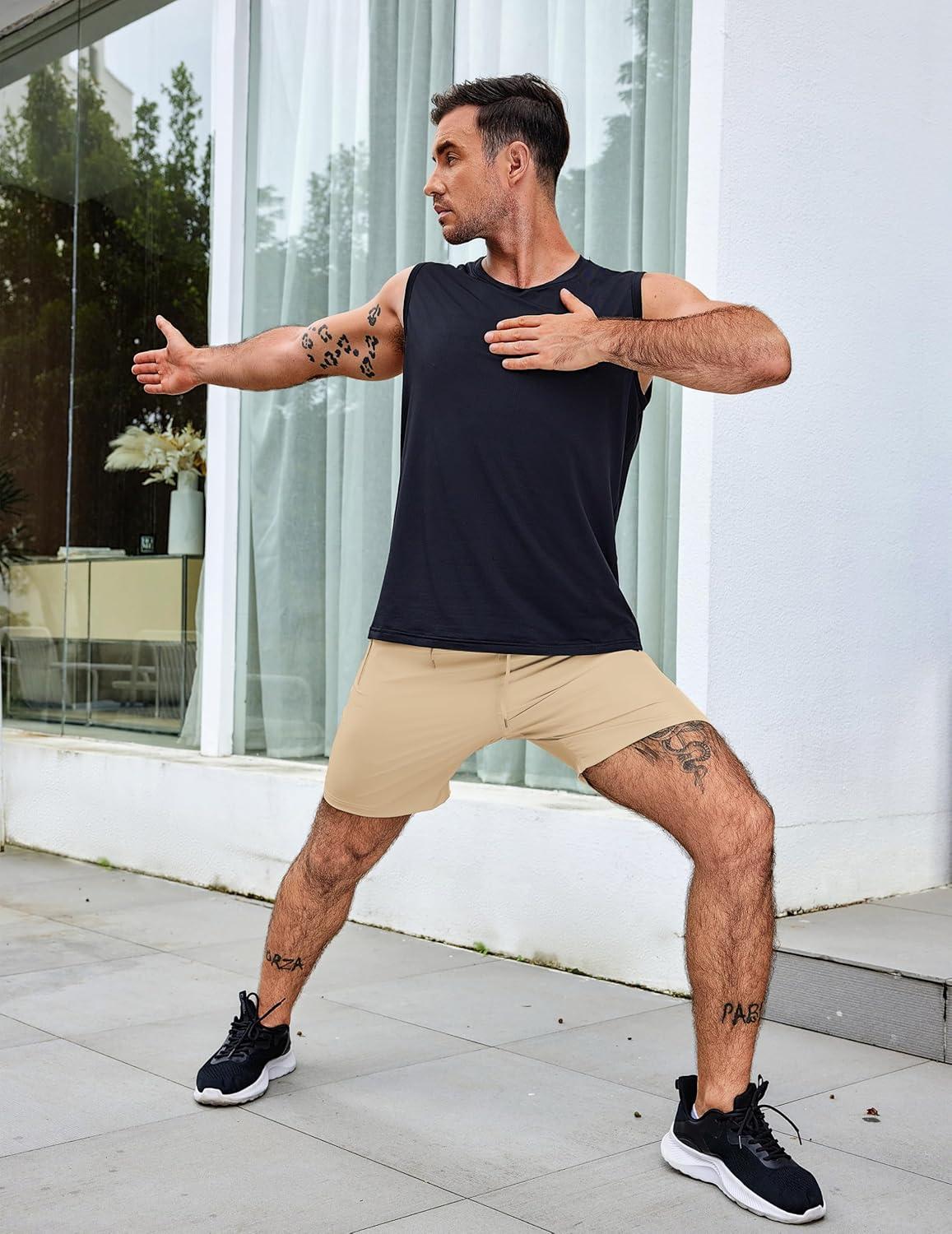 COOFANDY Men’s 2 Pack Workout Gym Shorts 7 Inch / 5 Inch Athletic Shorts Lightweight Casual Jogger Short with Zipper Pockets(Khaki / Black)