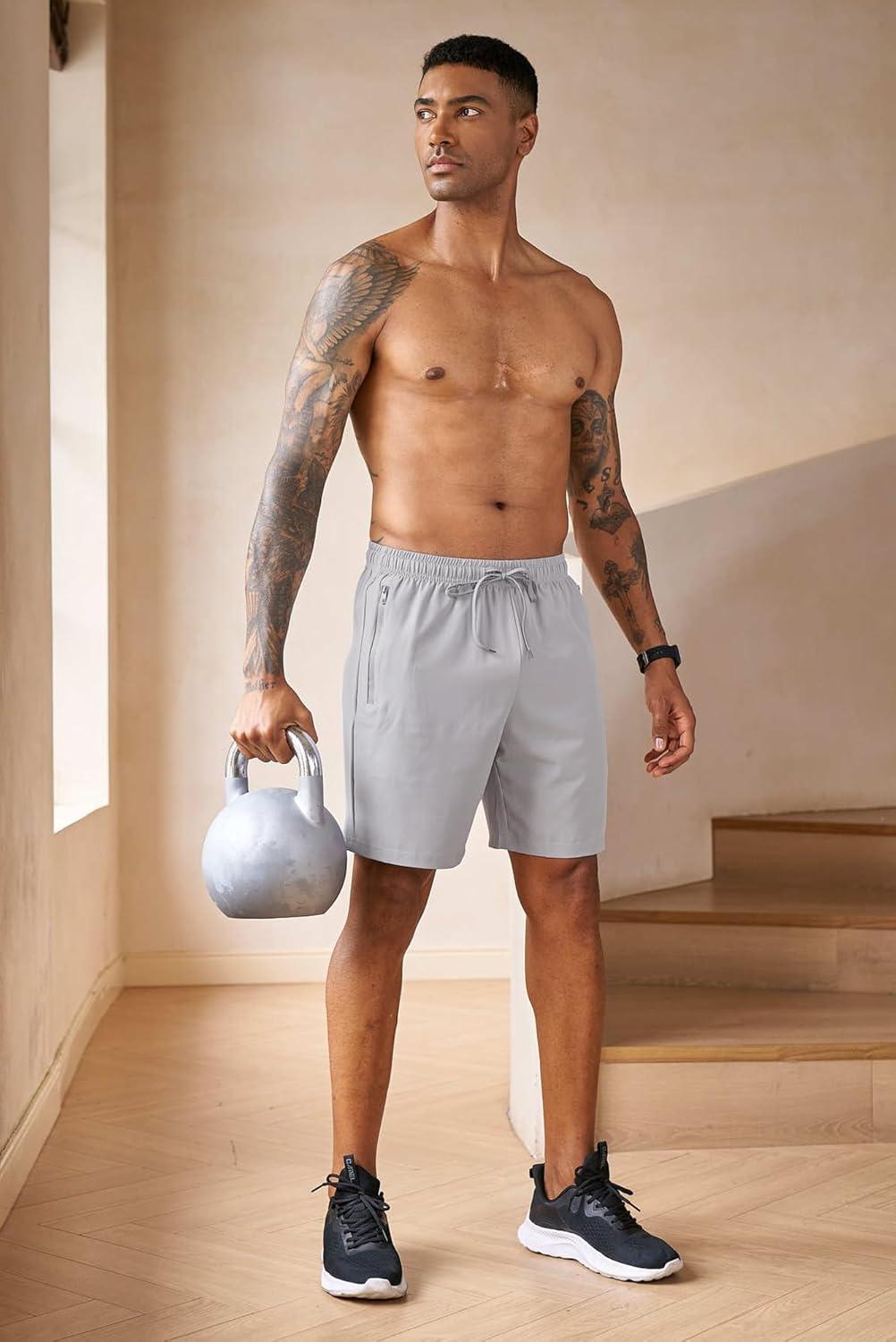 COOFANDY Men’s 2 Pack 9 inch Gym Workout Shorts Lightweight Casual Active Running Shorts with Pockets(Light Grey(1 Pack of 1))