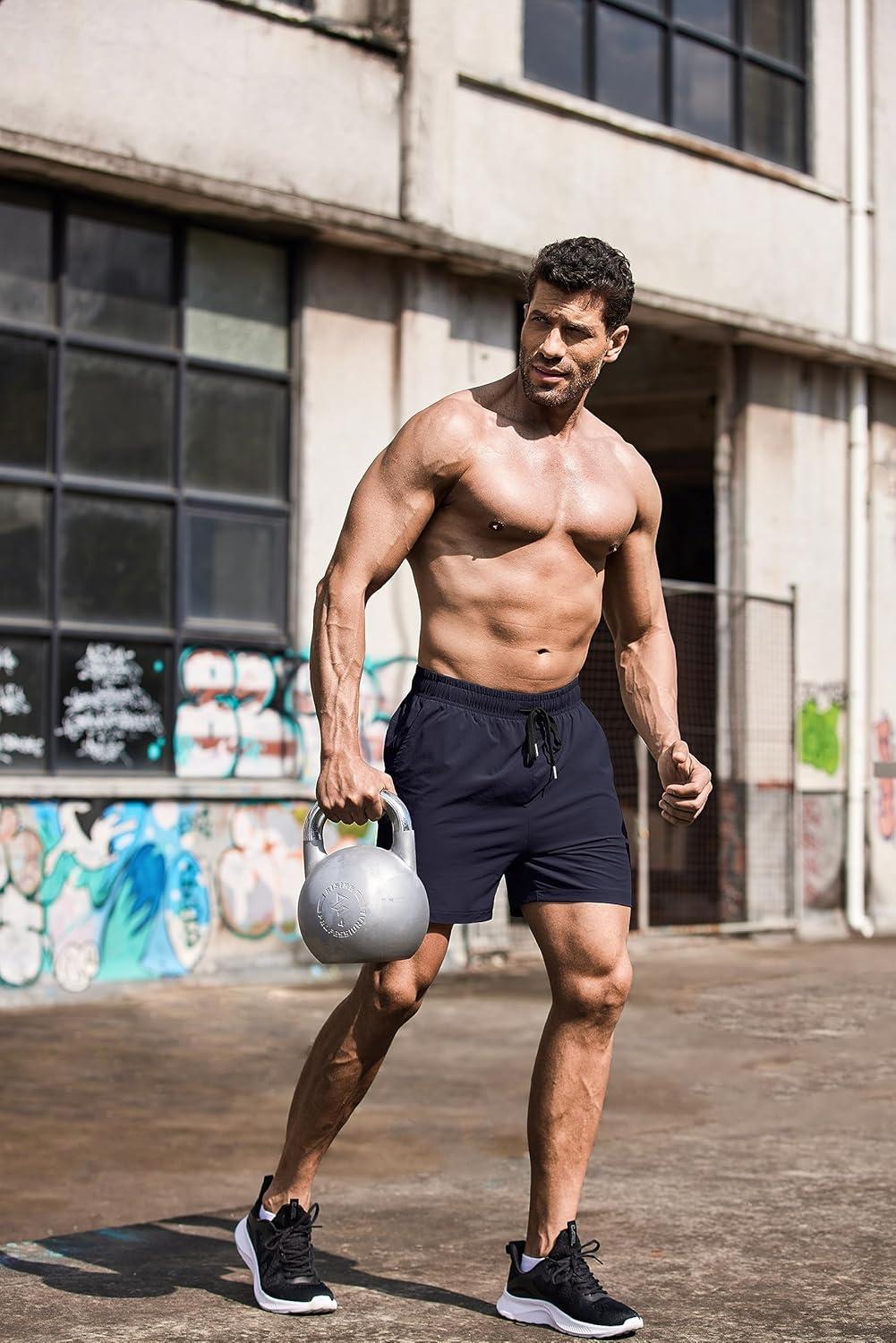 COOFANDY Men’s 2 Pack Gym Workout Shorts 5 Inch Mesh Athletic Shorts Quick Dry Running Shorts with Pockets(Black / Khaki)