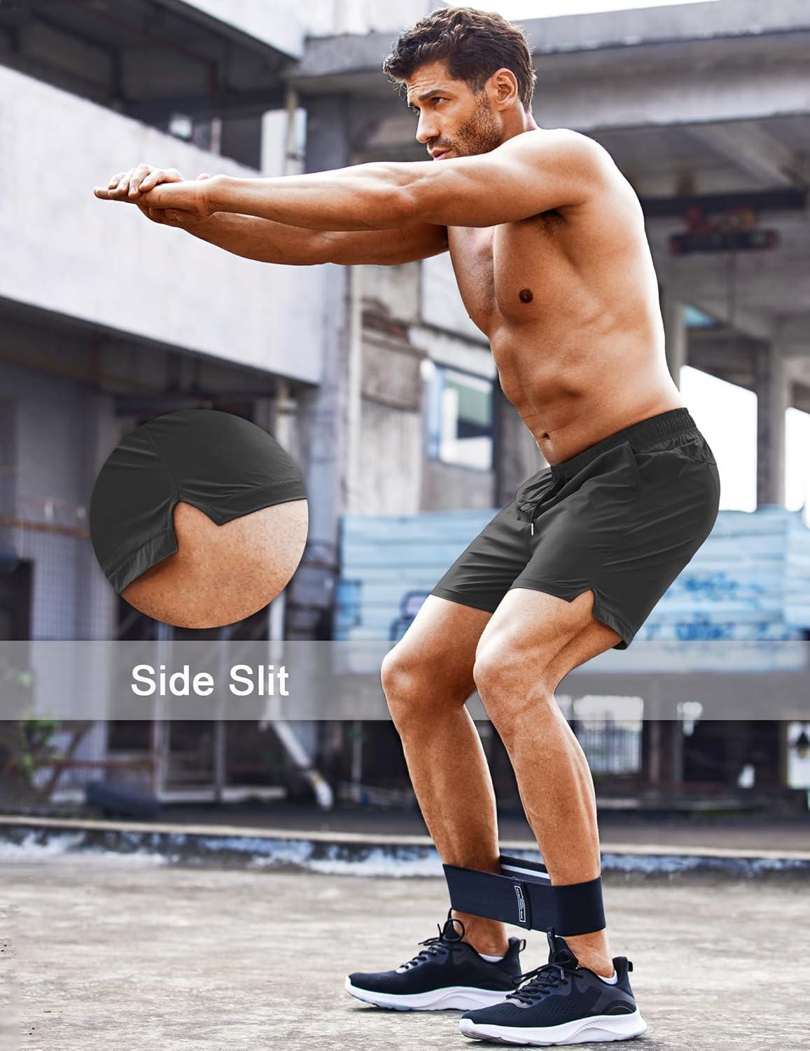 COOFANDY Men’s 2 Pack Gym Workout Shorts 5 Inch Mesh Athletic Shorts Quick Dry Running Shorts with Pockets(Black / Navy Blue)