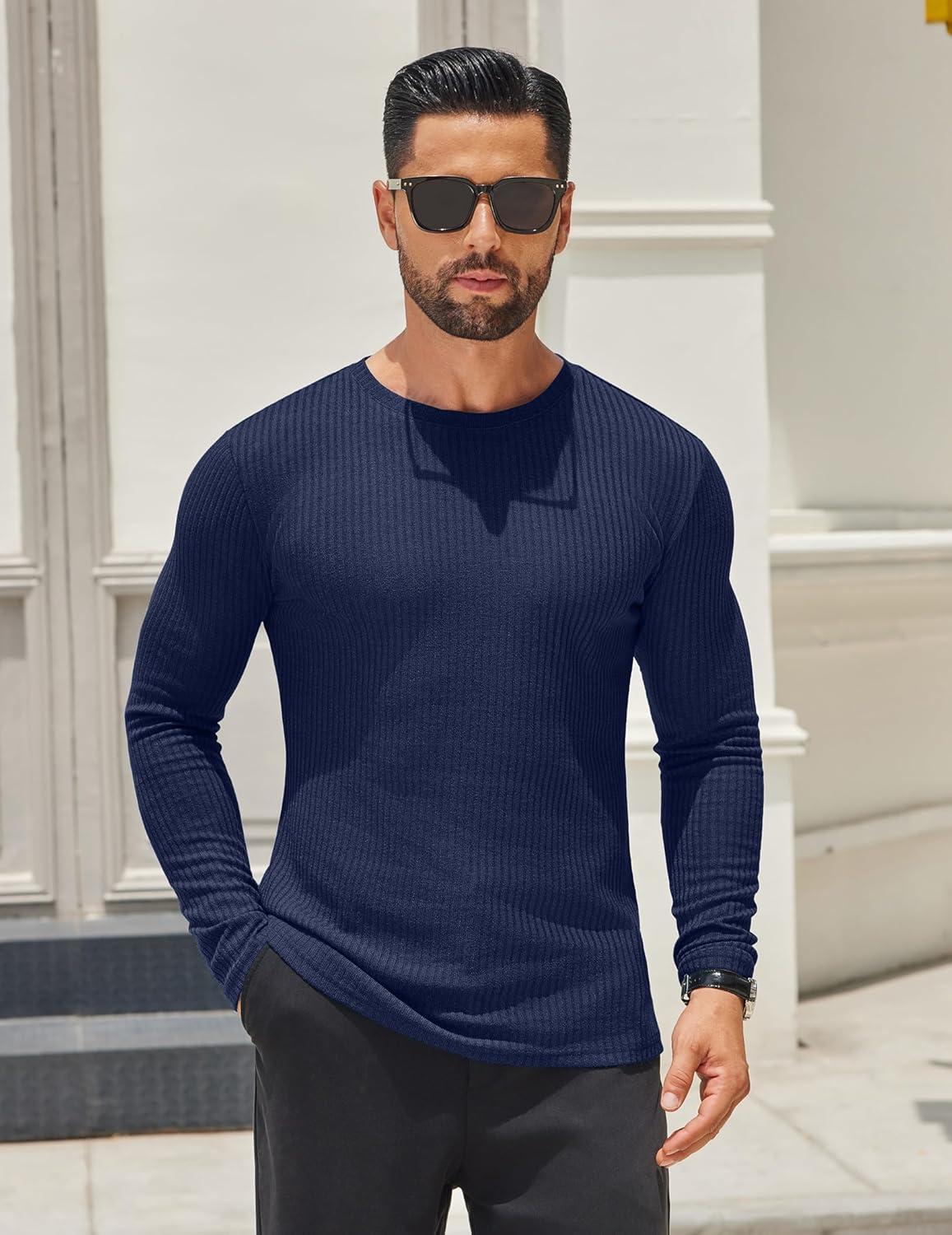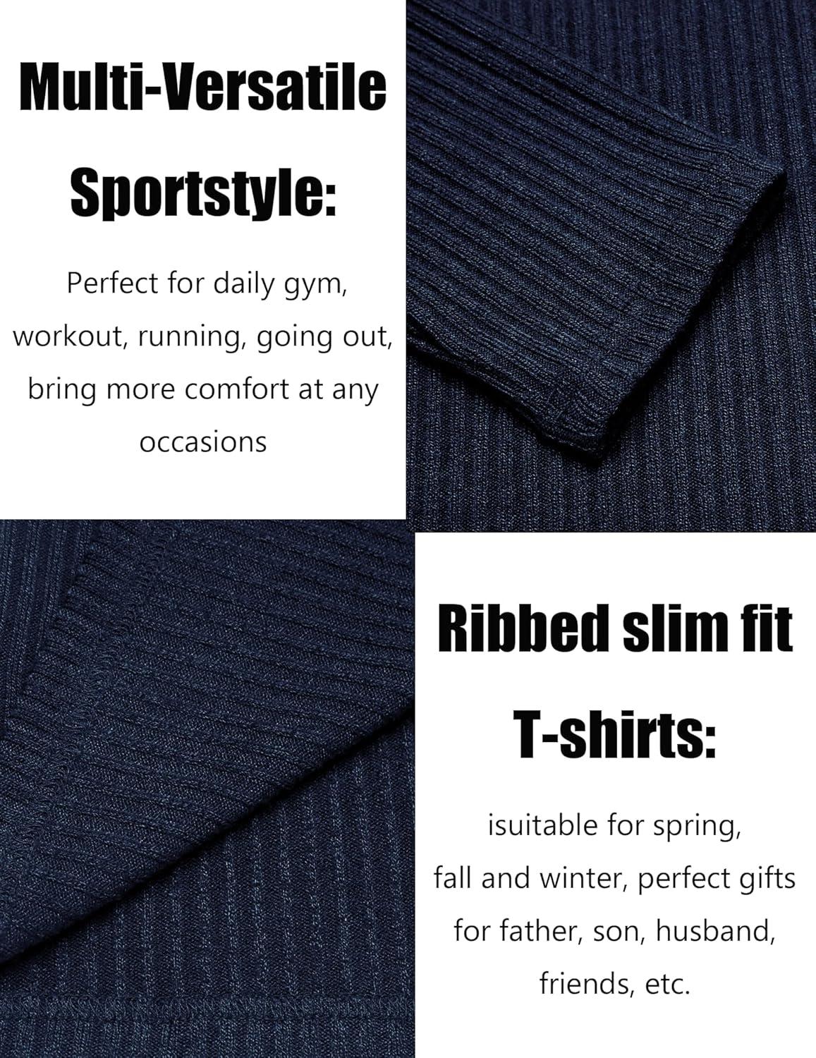 COOFANDY Men’s 2 Pack Muscle T-Shirt Stretch Long Sleeve Gym Workout Bodybuilding Training Tee Shirts Casual Hipster Tops(Navy Blue/Army Green)