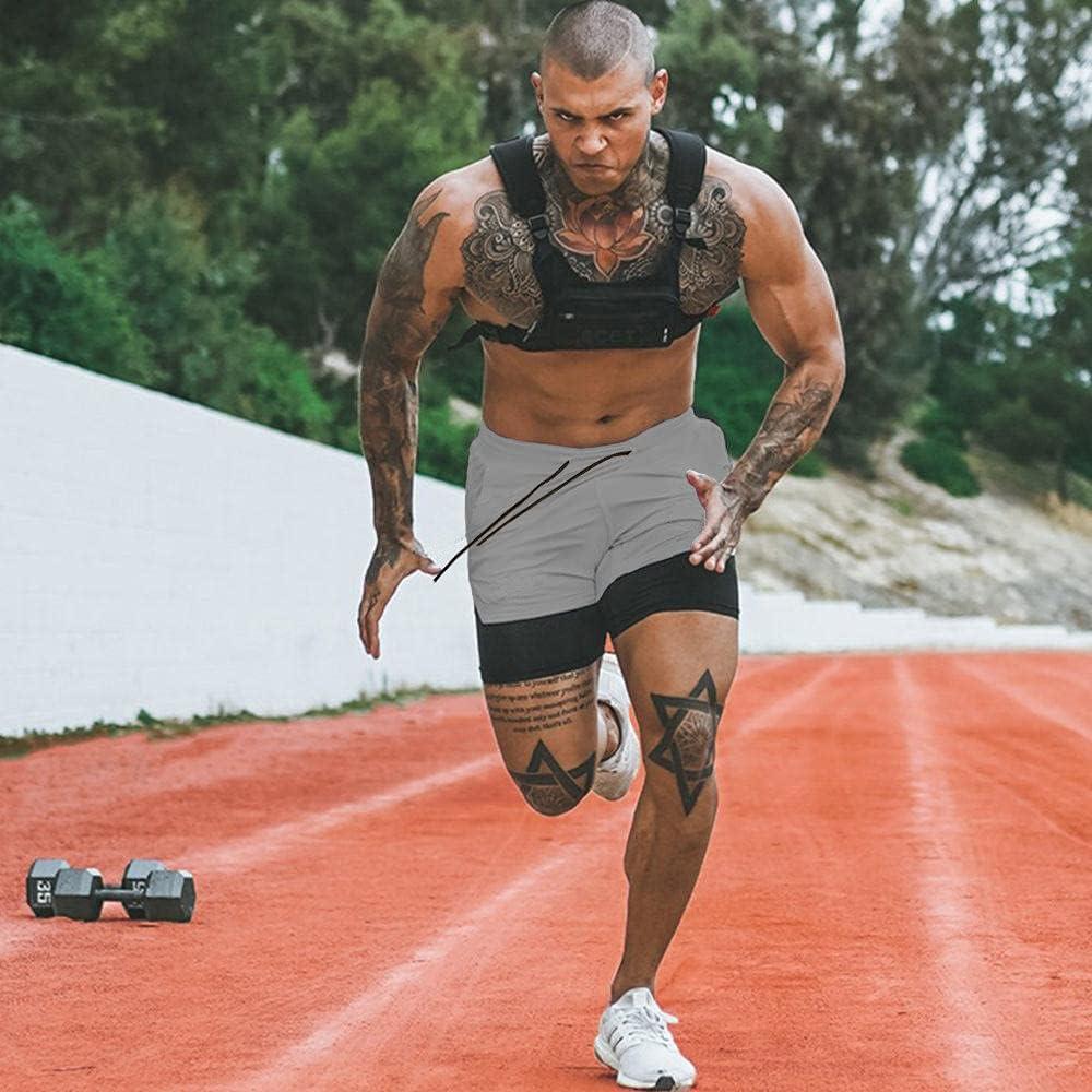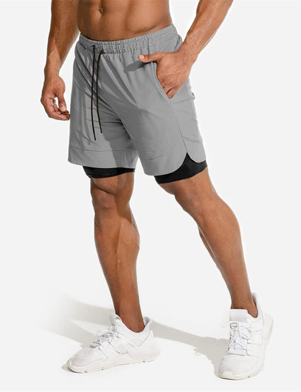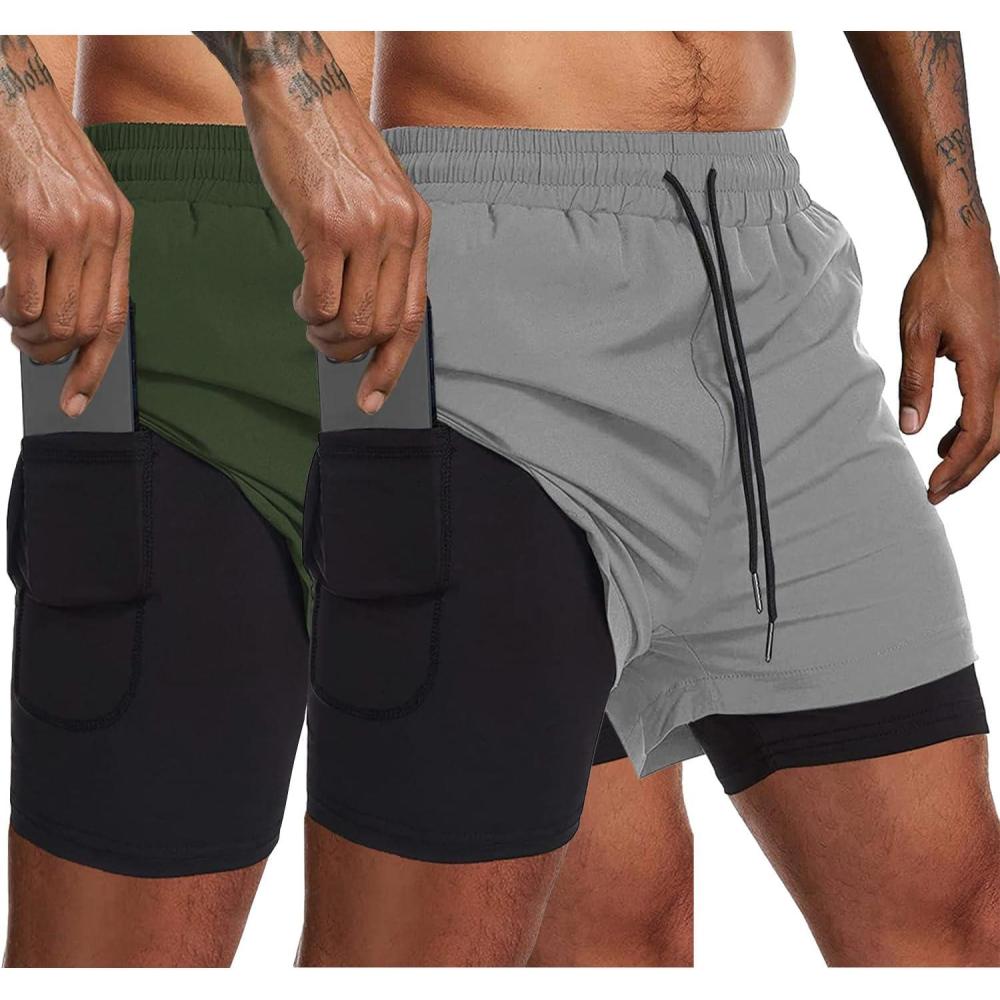 COOFANDY Men’s 2 Pack Running Shorts 2 in 1 Workout Shorts Quick Dry Gym Training Athletic Jogger with Phone Pockets(2-pack: Light Grey+army Green)