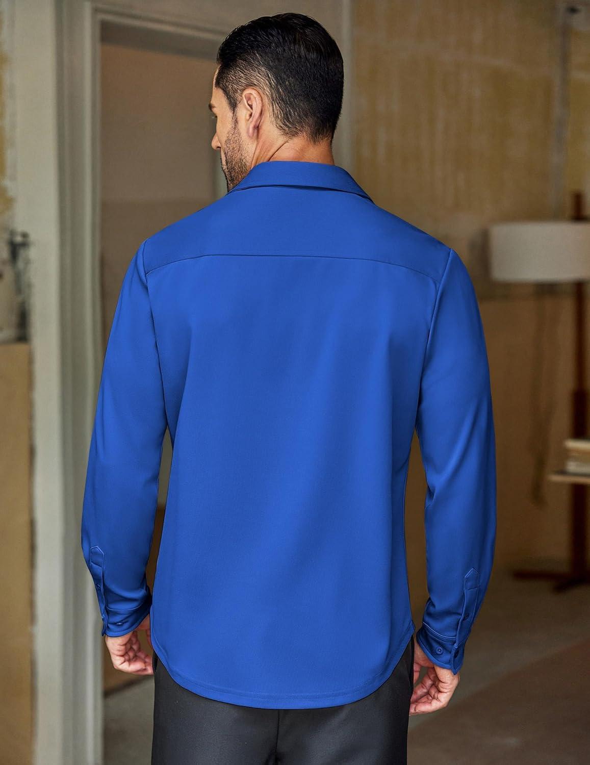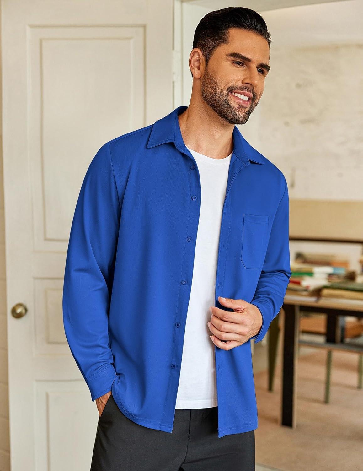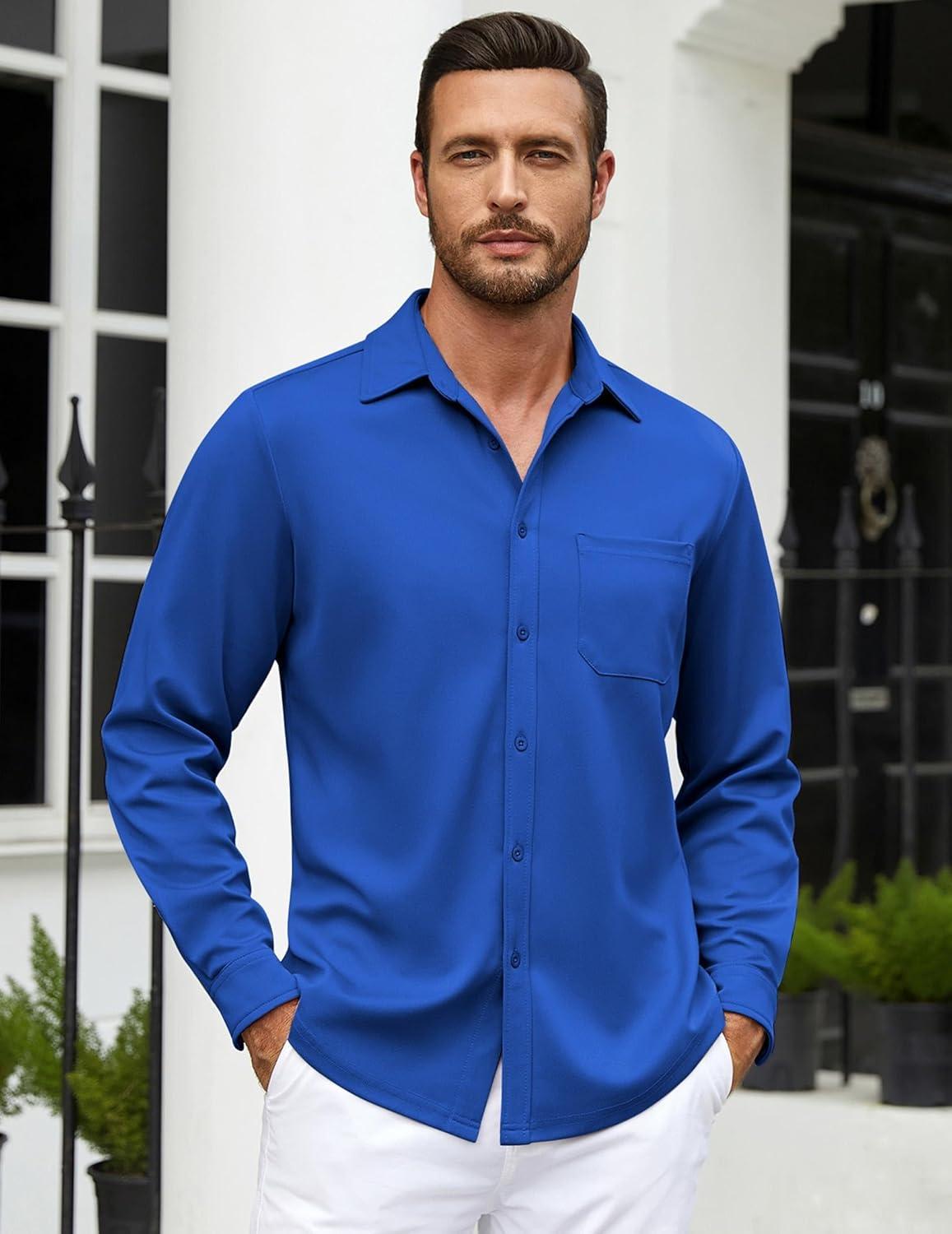 COOFANDY Mens Long Sleeve Casual Button Down Shirt Wrinkle Free Untucked Dress Shirts(Blue)