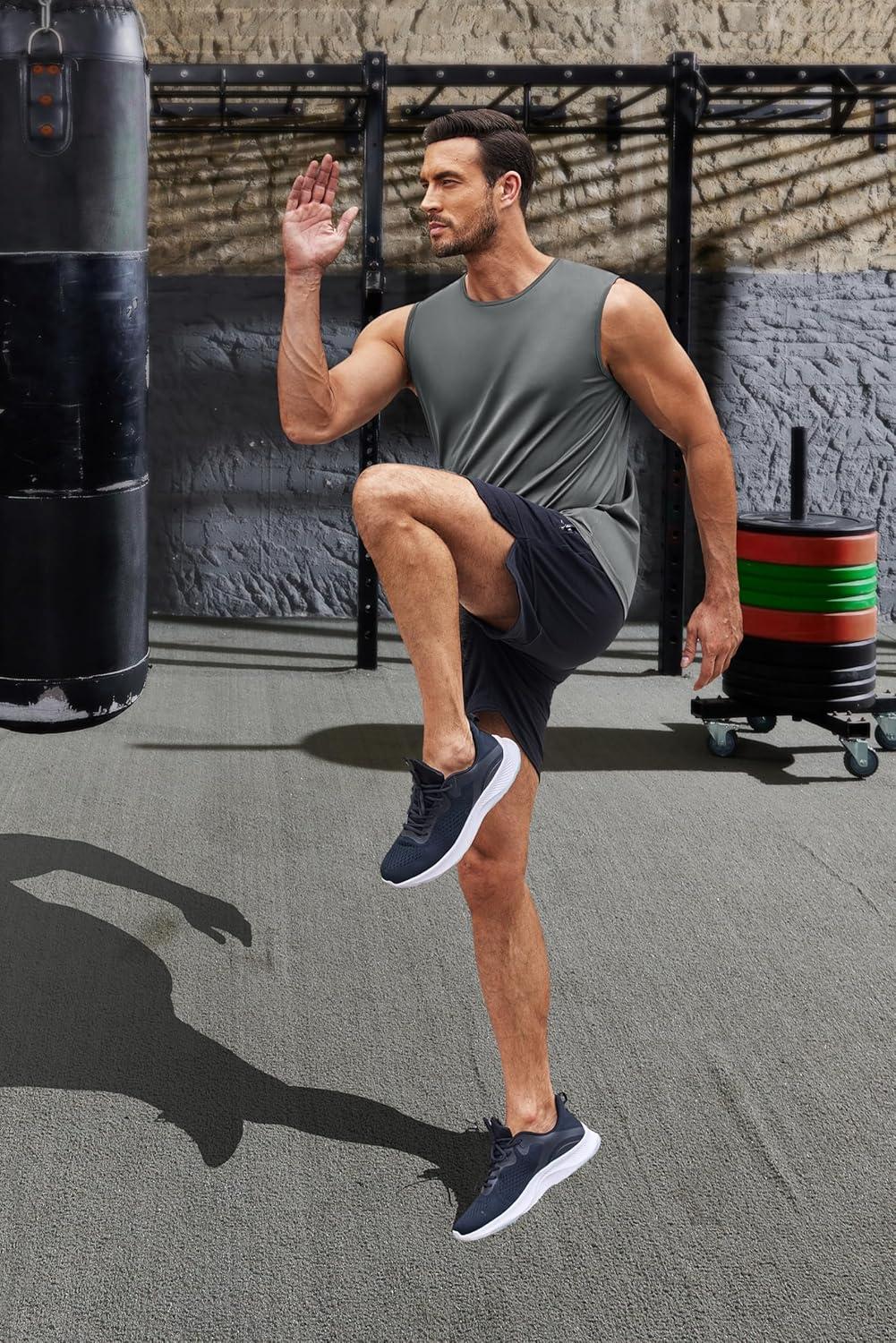 COOFANDY Mens 2 Pack Workout Tank Top UPF 50+ Quick Dry Sleeveless Swim Shirt Gym Muscle Athletic Summer Beach T Shirts(Dark Grey/Light Blue)