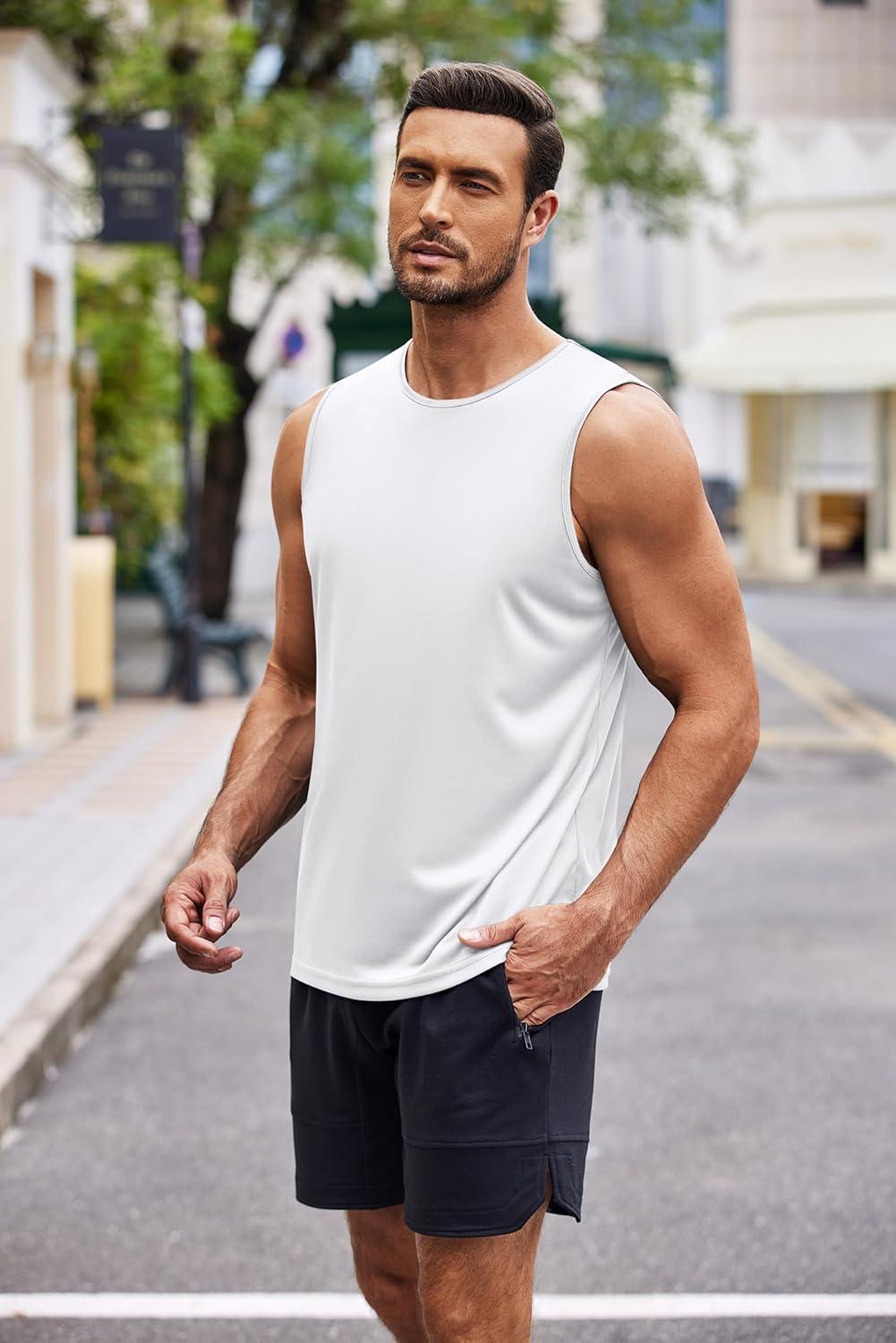 COOFANDY Mens 2 Pack Workout Tank Top UPF 50+ Quick Dry Sleeveless Swim Shirt Gym Muscle Athletic Summer Beach T Shirts(White)