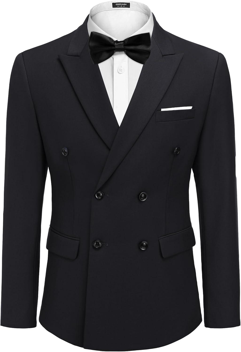 COOFANDY Men’s 2 Piece Double Breasted Suits Slim Fit Tuxedo Jacket and Dress Pants Set for Wedding Business Prom(Black)