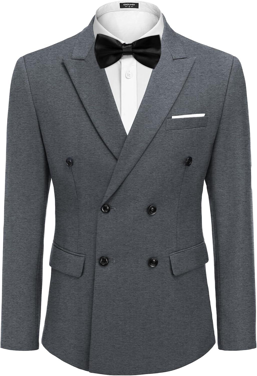 COOFANDY Men’s 2 Piece Double Breasted Suits Slim Fit Tuxedo Jacket and Dress Pants Set for Wedding Business Prom(Heather Grey)