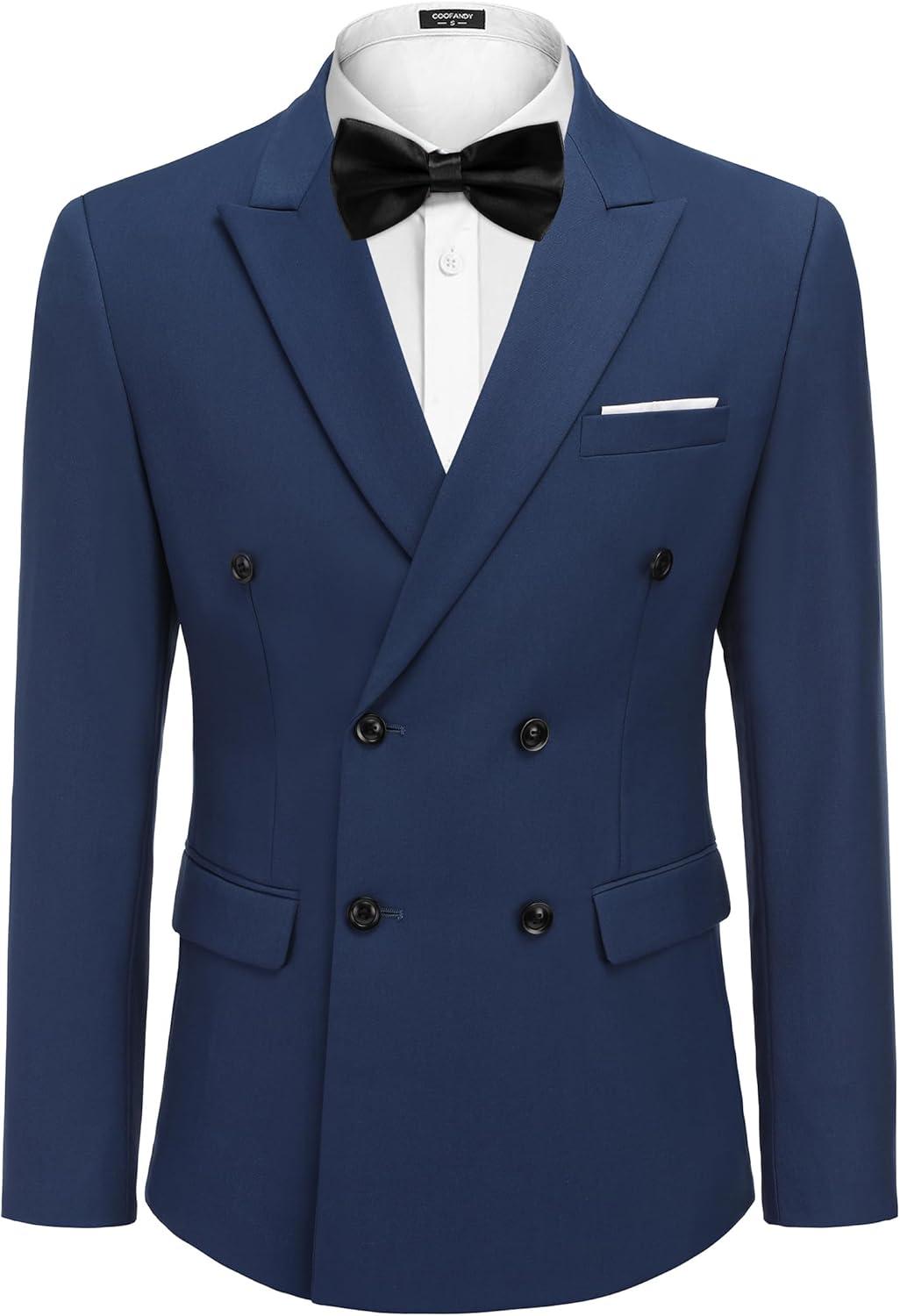 COOFANDY Men’s 2 Piece Double Breasted Suits Slim Fit Tuxedo Jacket and Dress Pants Set for Wedding Business Prom(Navy)