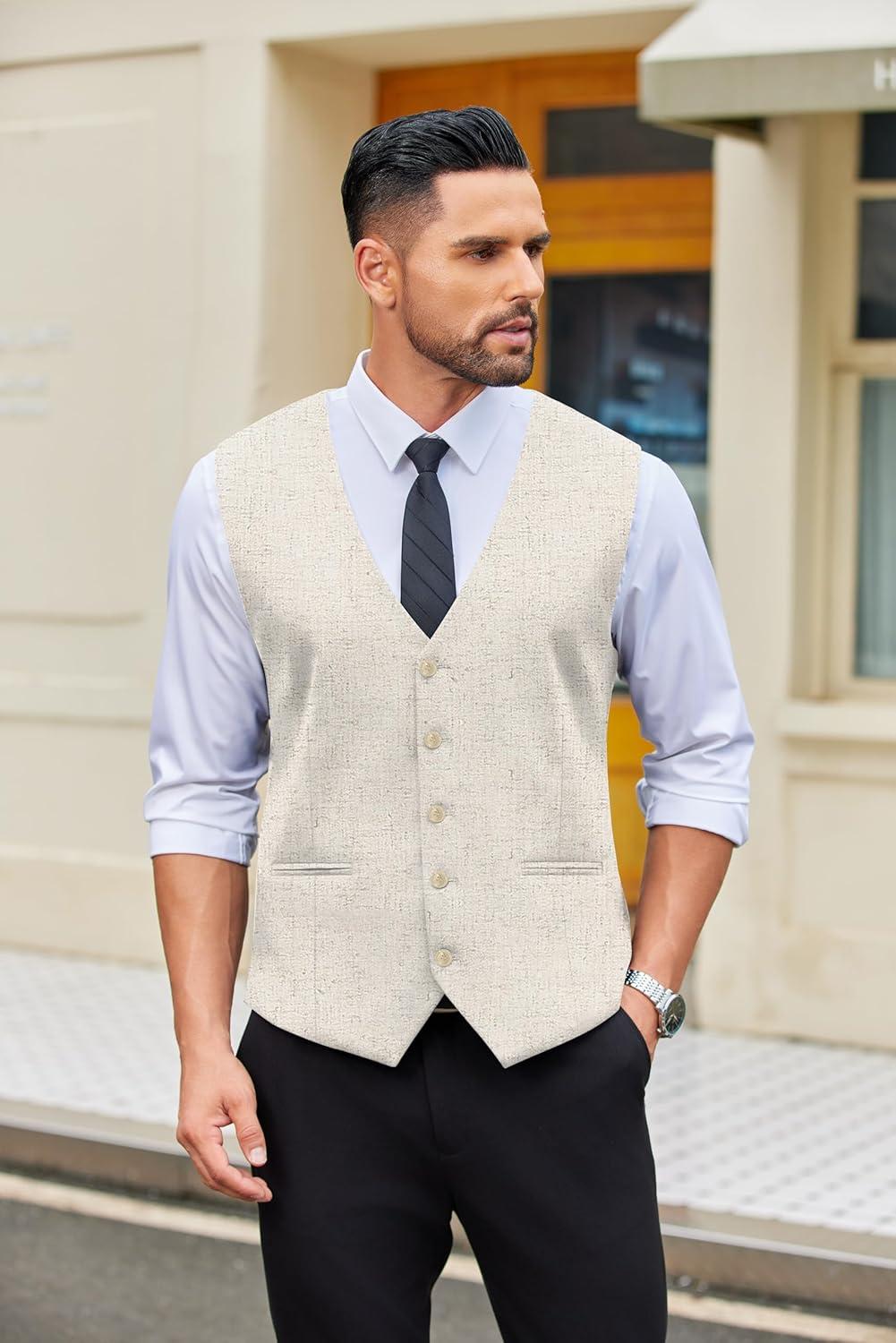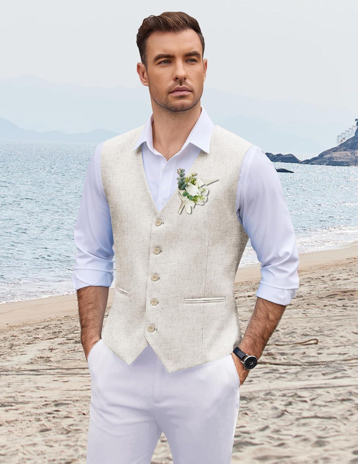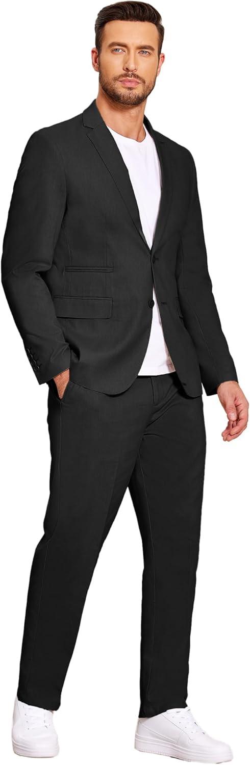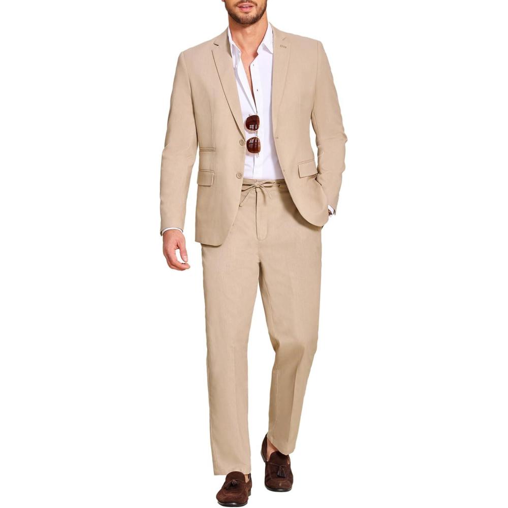 COOFANDY Men’s 2 Piece Linen Suits Set Regular Fit Casual Lightweight Blazer Jacket and Pants(Khaki)