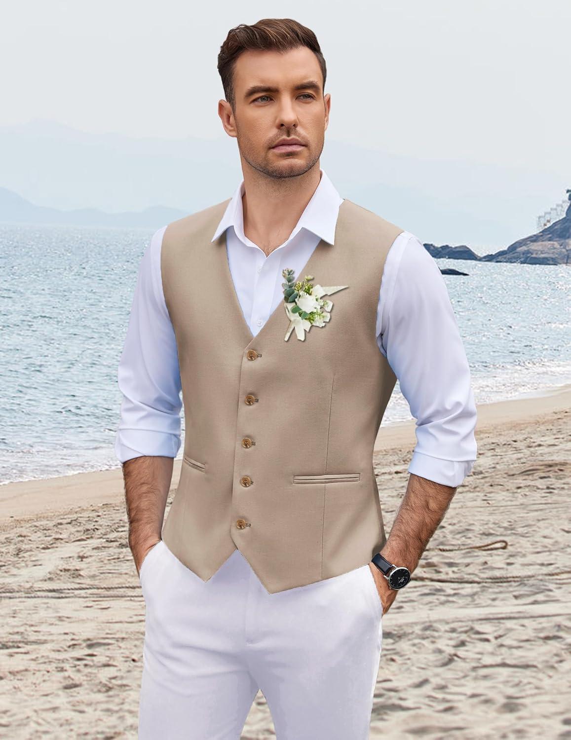 COOFANDY Men’s 2 Piece Linen Suits Set Regular Fit Casual Lightweight Blazer Jacket and Pants(Light Green)