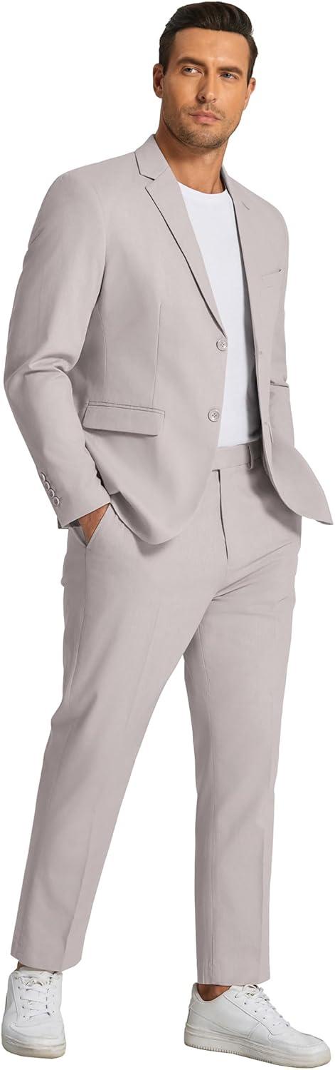 COOFANDY Men’s 2 Piece Linen Suits Set Regular Fit Casual Linen Lightweight Suit Summer Beach Wedding(Light Grey)