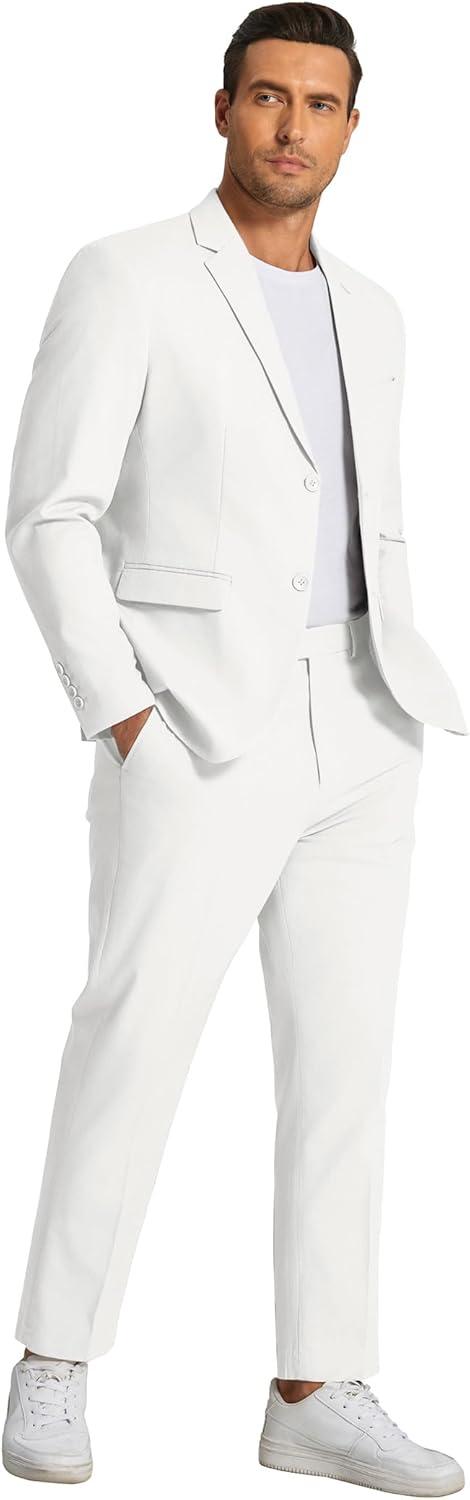 COOFANDY Men’s 2 Piece Linen Suits Set Regular Fit Casual Linen Lightweight Suit Summer Beach Wedding(White)