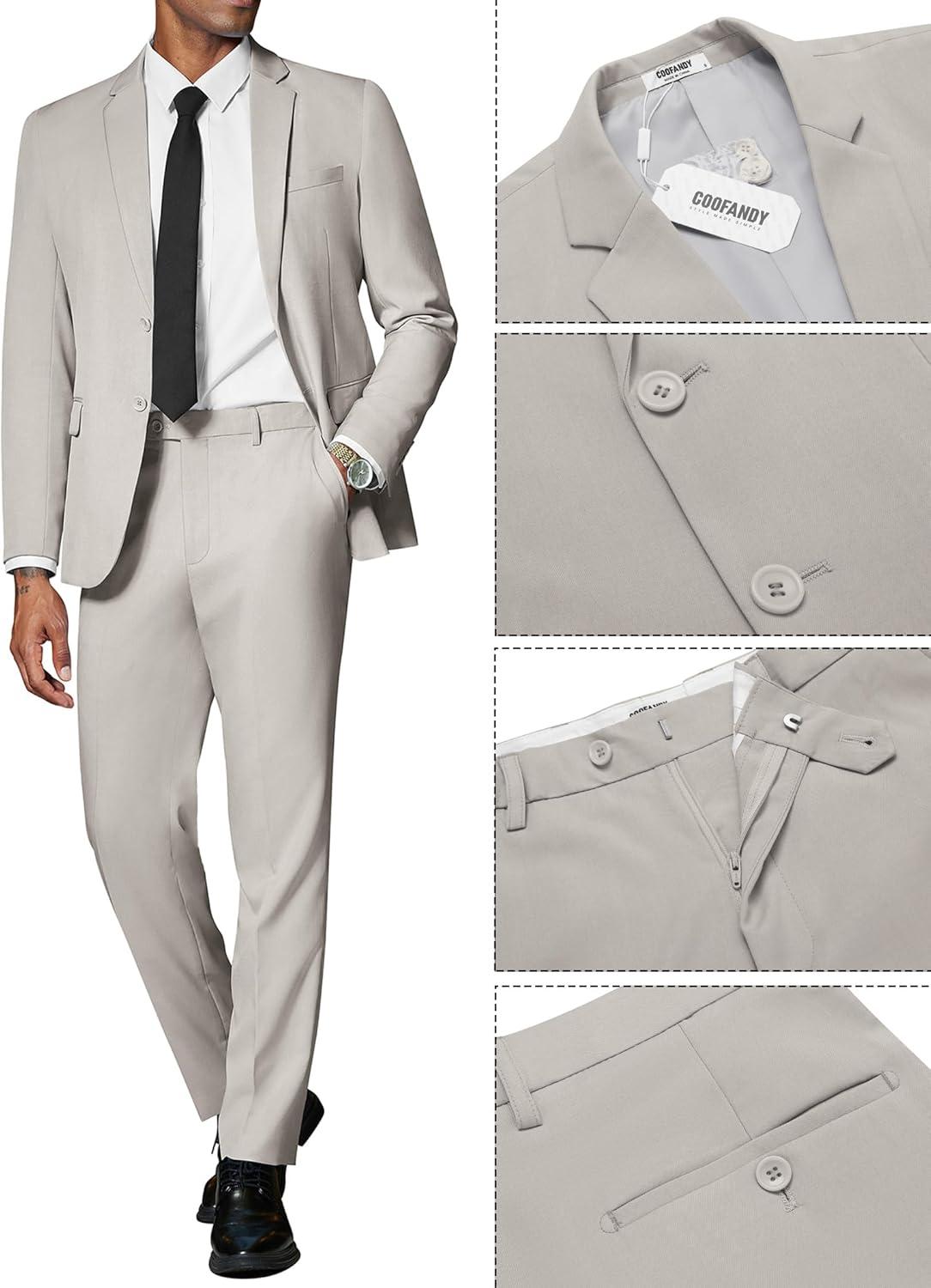 COOFANDY Mens 2 Piece Suit Slim Fit 2 Button Formal Jacket Suits Pants Set for Wedding Business Prom(Light Grey)