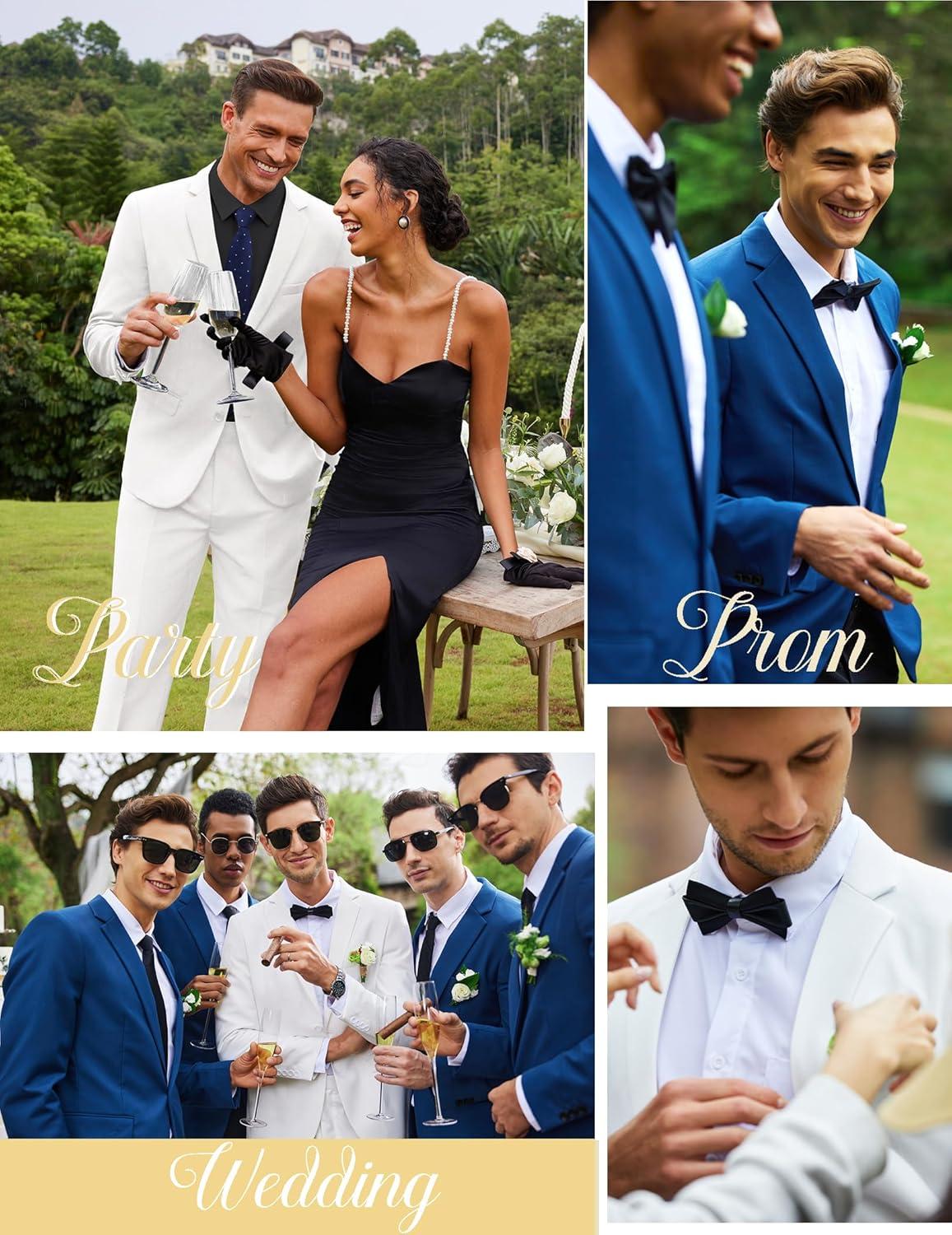 COOFANDY Mens 2 Piece Suit Slim Fit 2 Button Formal Jacket Suits Pants Set for Wedding Business Prom(White)