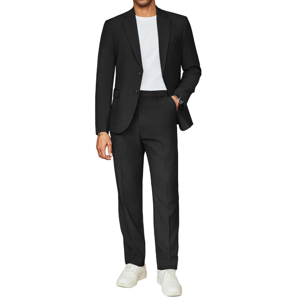 COOFANDY Men’s 2 Piece Suits Slim Fit Two Buttons Casual Blazer Jacket and Pants Set Tuxedo Suit for Wedding Prom Business(Black)