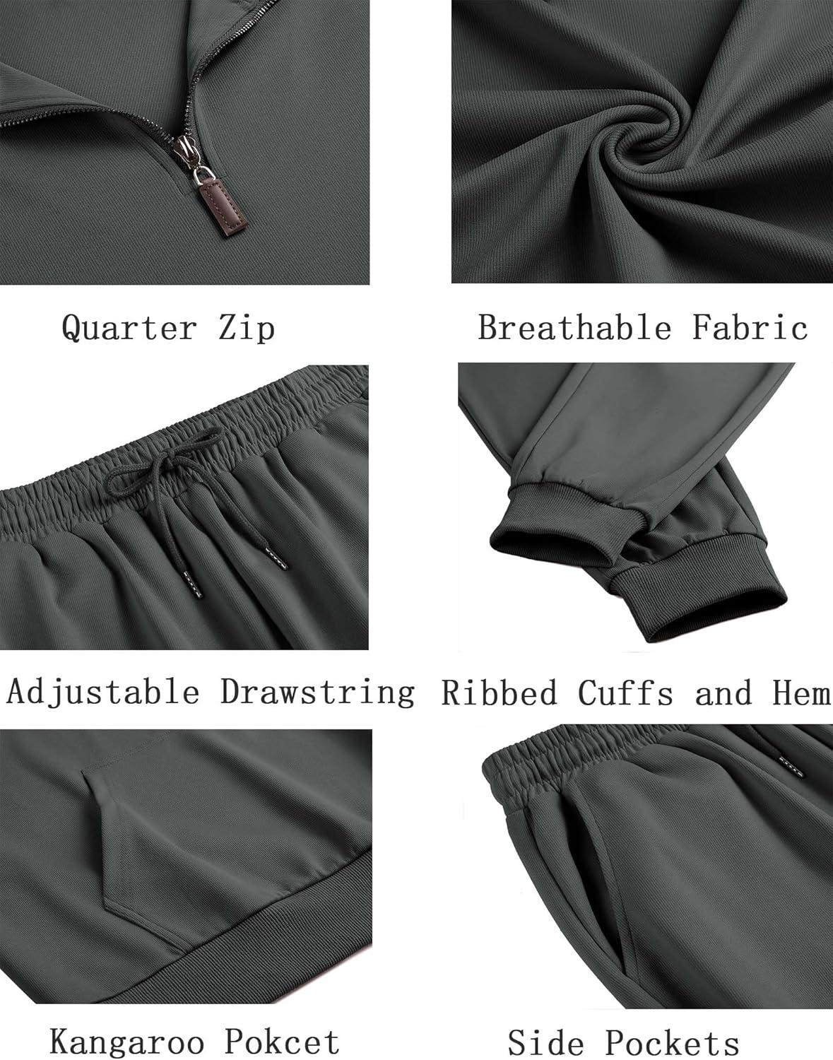 COOFANDY Men's 2 Piece Track Suit Set Jogging Sweatsuit Workout Quarter Zip Suit Running Gym Tracksuit Casual Warm Up Sweat Suits Set