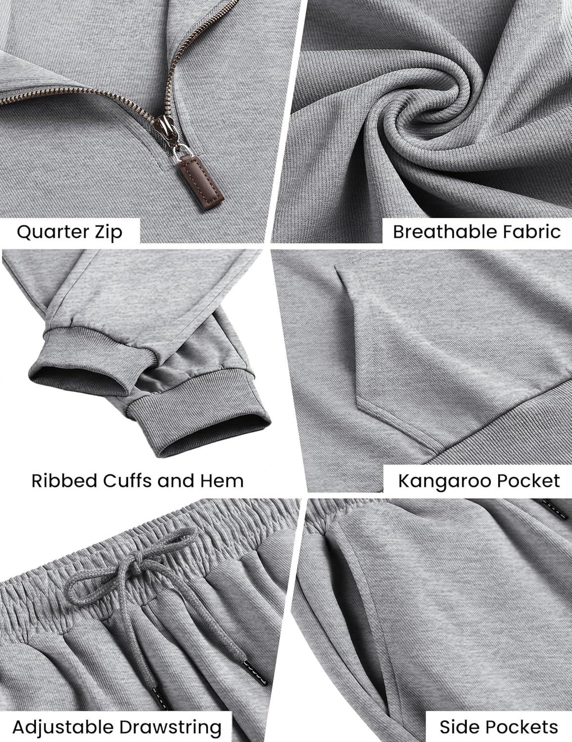 COOFANDY Men’s 2 Piece Track Suit Set Jogging Sweatsuit Workout Quarter Zip Suit(Heather Grey)