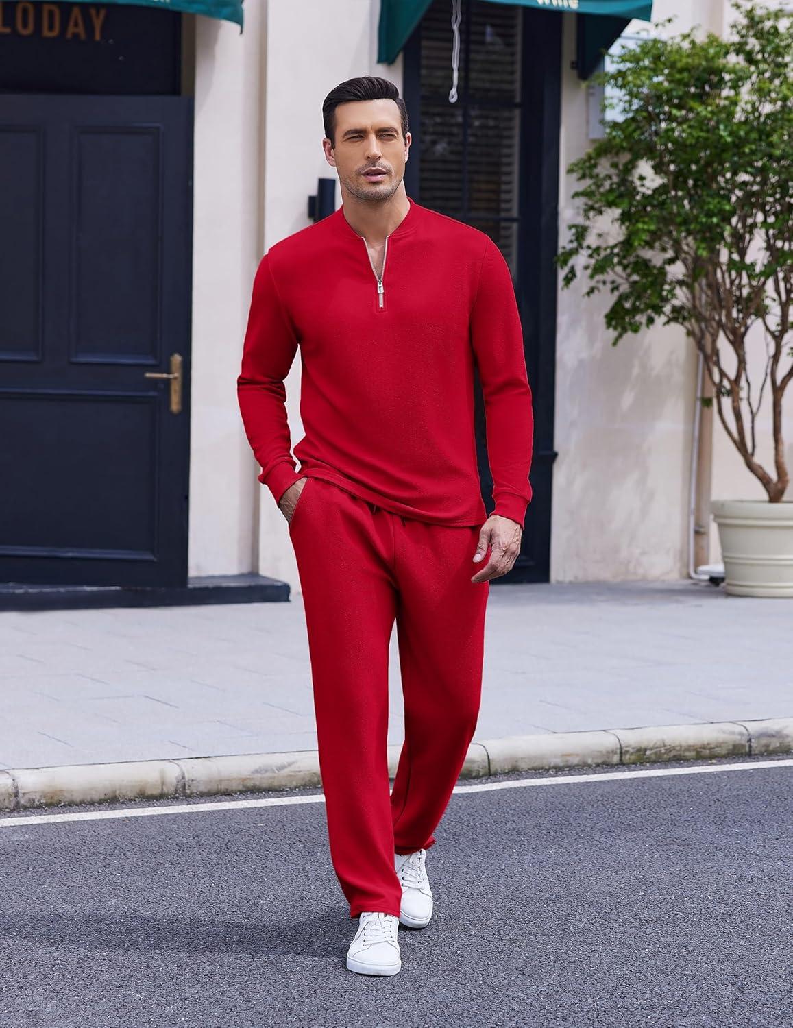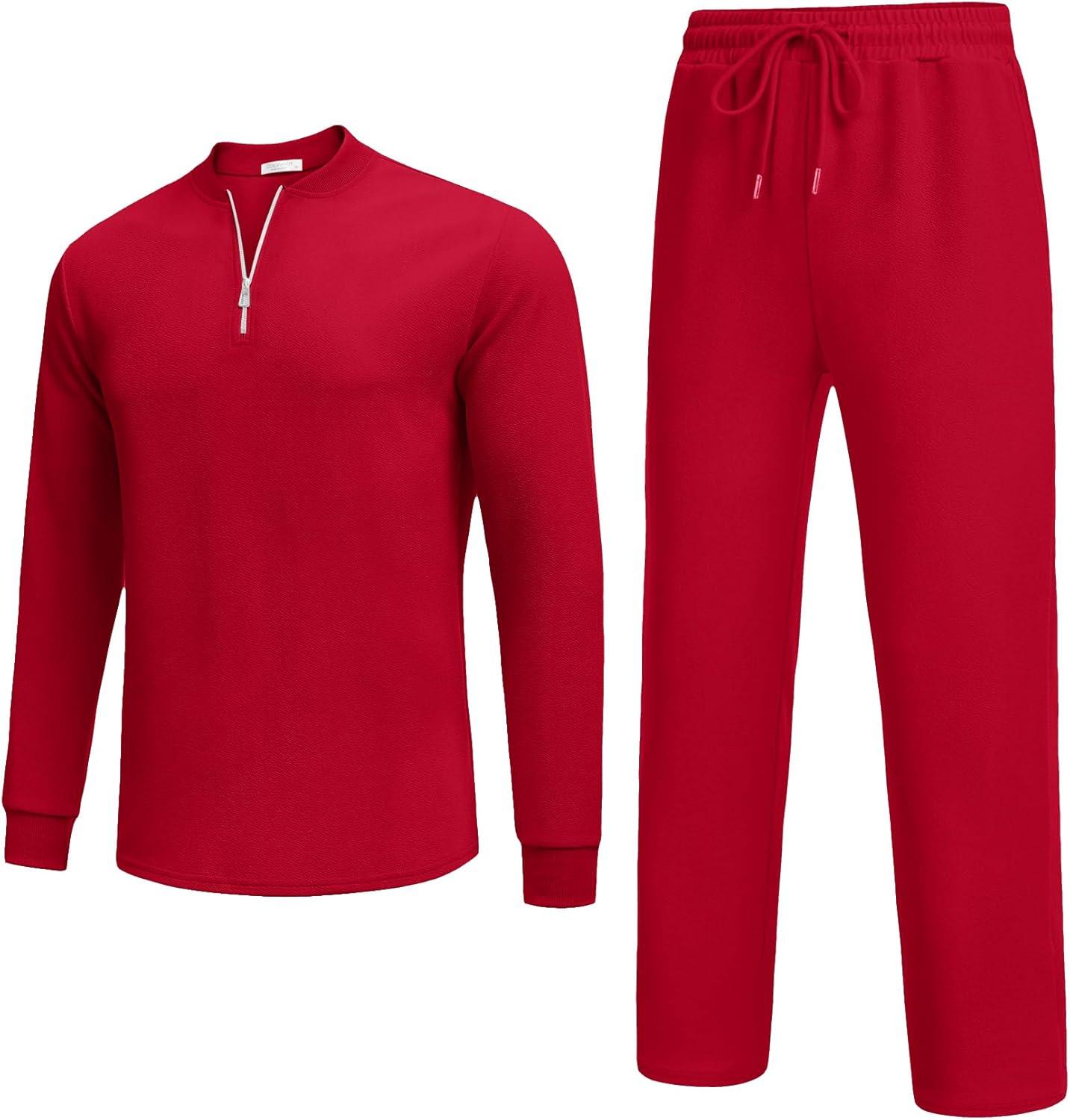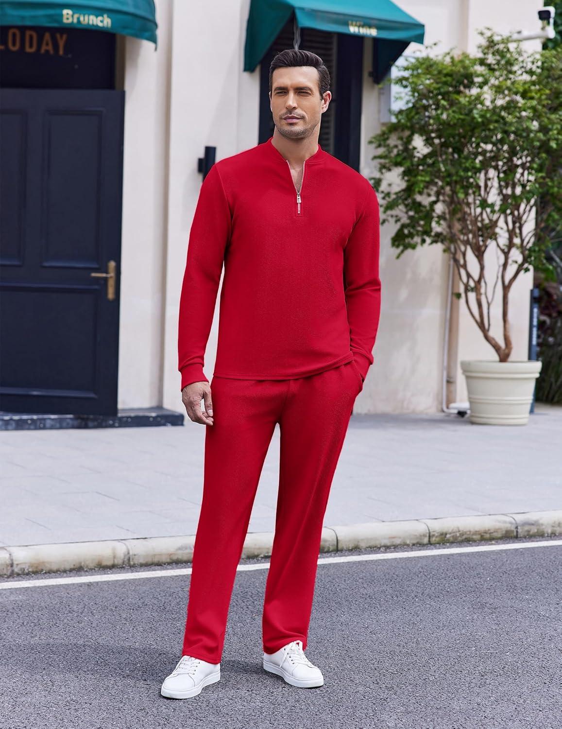 COOFANDY Men’s 2 Piece Tracksuit Set Polo Athletic Sweatsuit Quarter Zip Jogging Long Sleeve Casual Sports Outfits(Red)