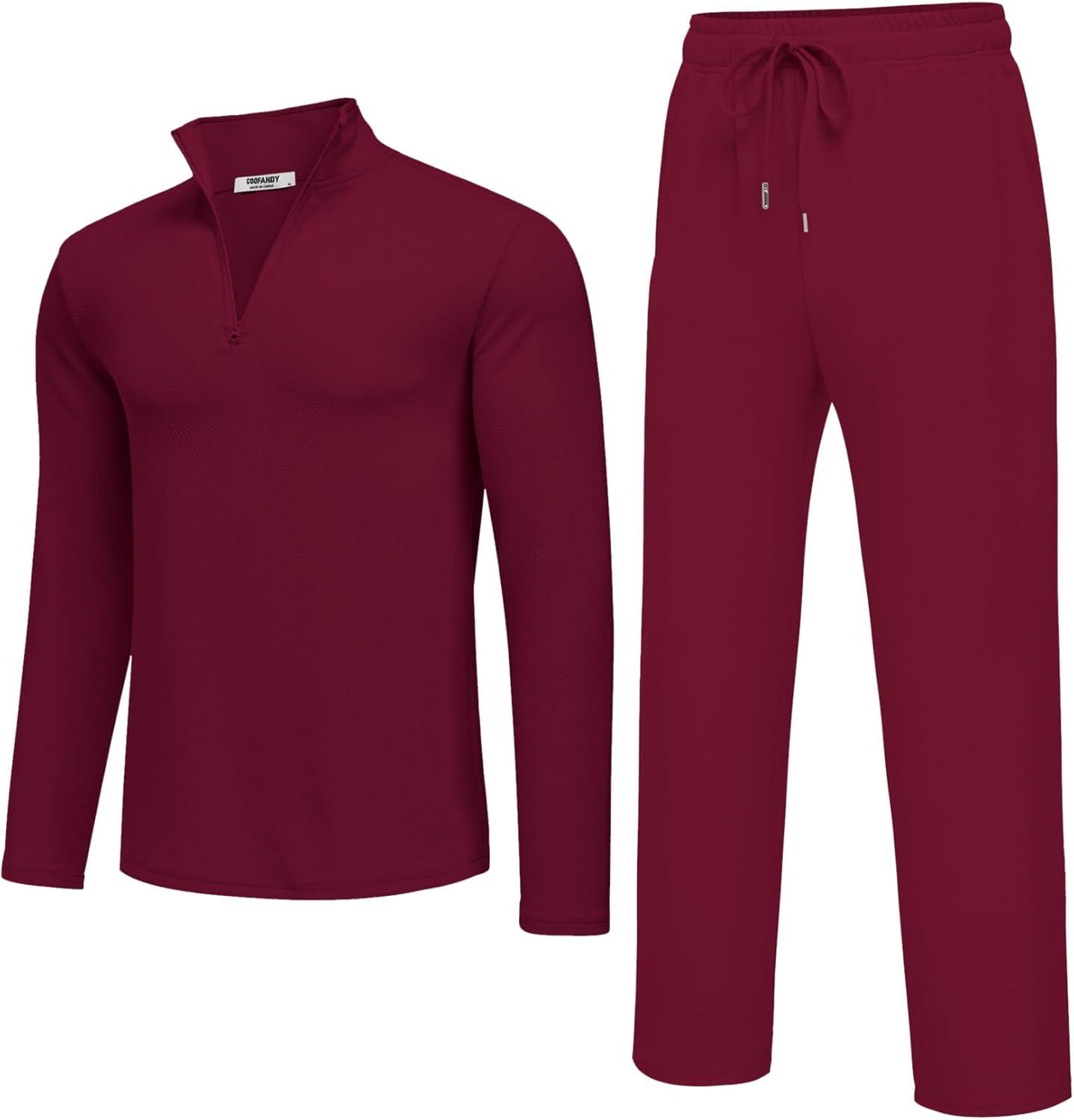 COOFANDY Men’s 2 Piece Tracksuit Set Quarter Zip Sweatsuit Athletic Running Suit Sets Long Sleeve Casual Outfits(Dark Red)