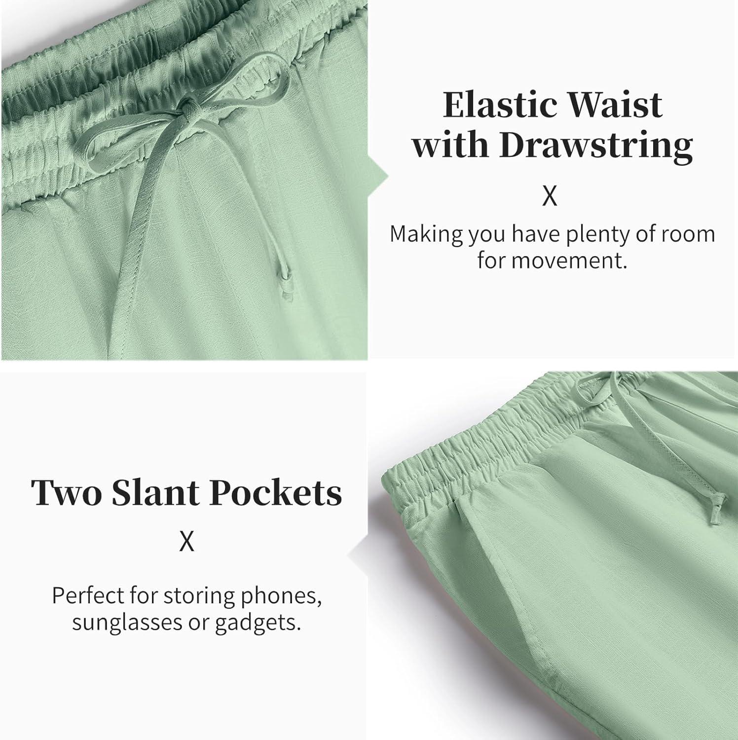 COOFANDY Men’s 2 Pieces Cotton Linen Set Casual Short Sleeve Henley Shirts Beach Yoga Pants Summer Outfits(Green)