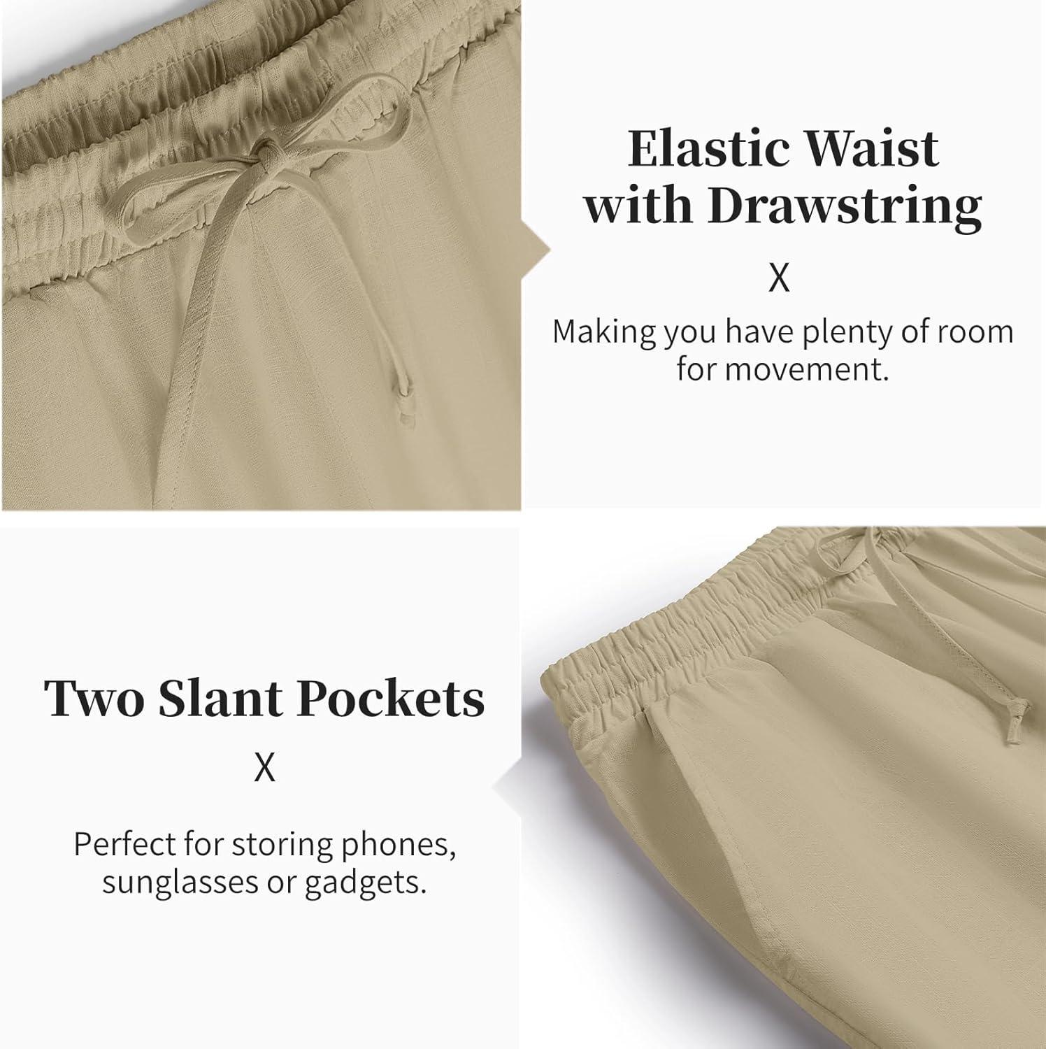 COOFANDY Men’s 2 Pieces Cotton Linen Set Casual Short Sleeve Henley Shirts Beach Yoga Pants Summer Outfits(Khaki)