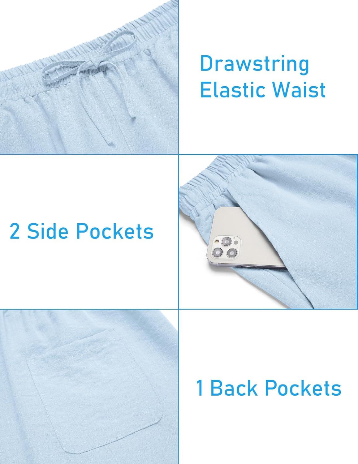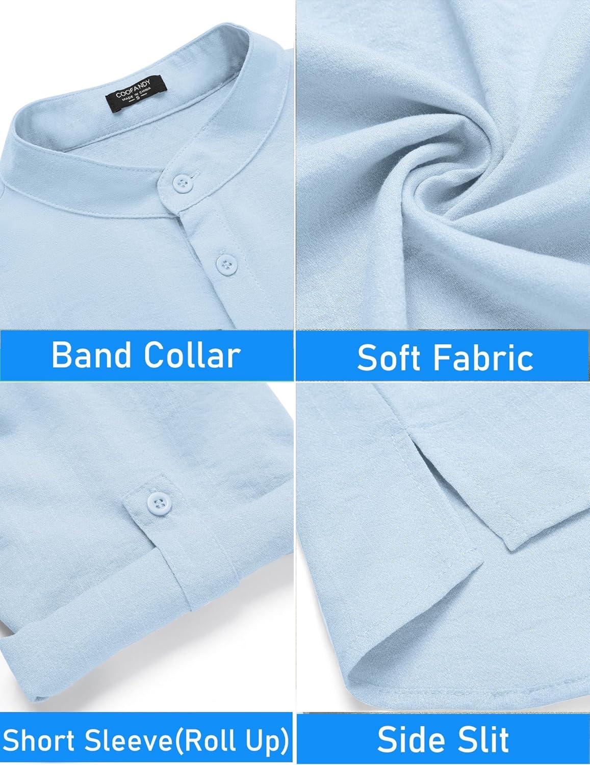 COOFANDY Men’s 2 Pieces Linen Set Henley Shirt Short Sleeve and Shorts Summer Beach Yoga Matching Outfits(Light Blue)
