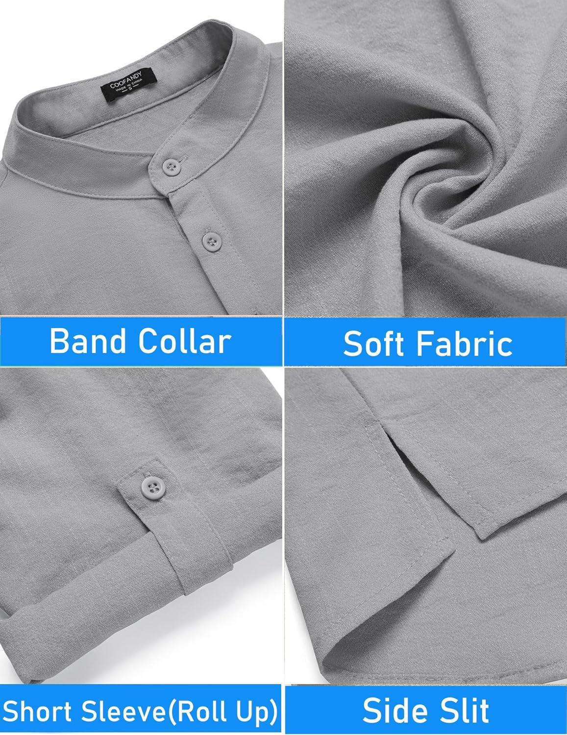 COOFANDY Men’s 2 Pieces Linen Set Henley Shirt Short Sleeve and Shorts Summer Beach Yoga Matching Outfits(Light Grey)