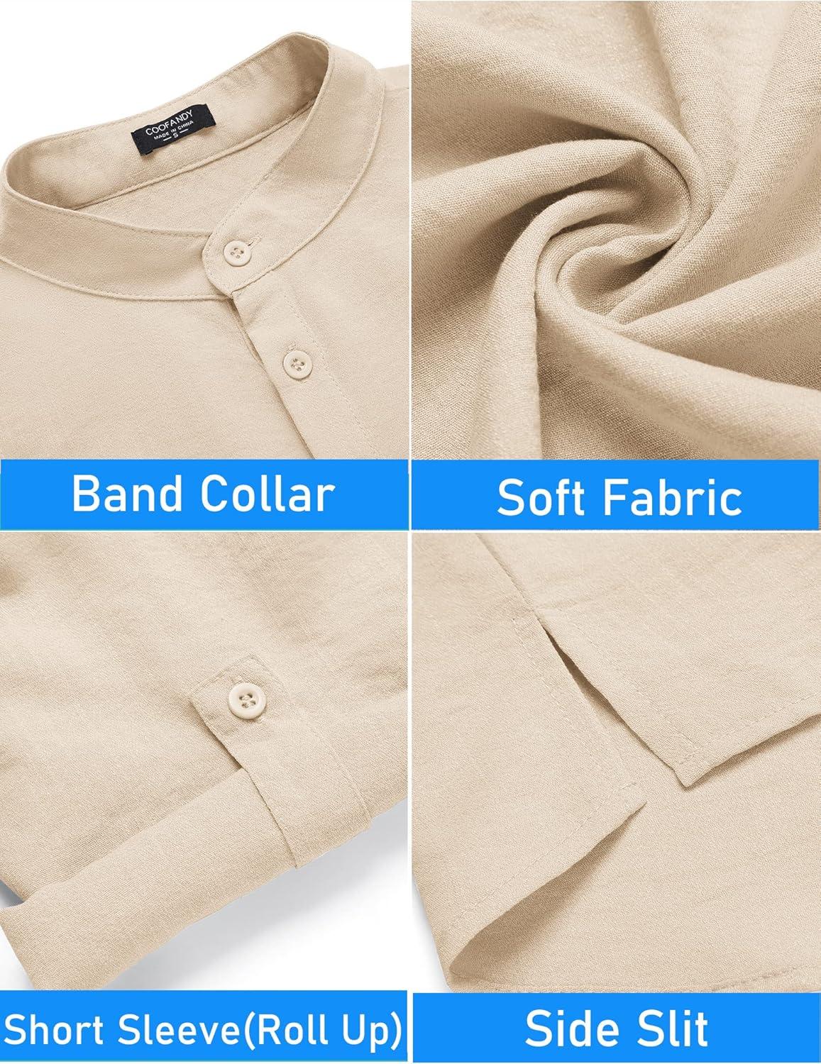 COOFANDY Men’s 2 Pieces Linen Set Henley Shirt Short Sleeve and Shorts Summer Beach Yoga Matching Outfits(Light Khaki)