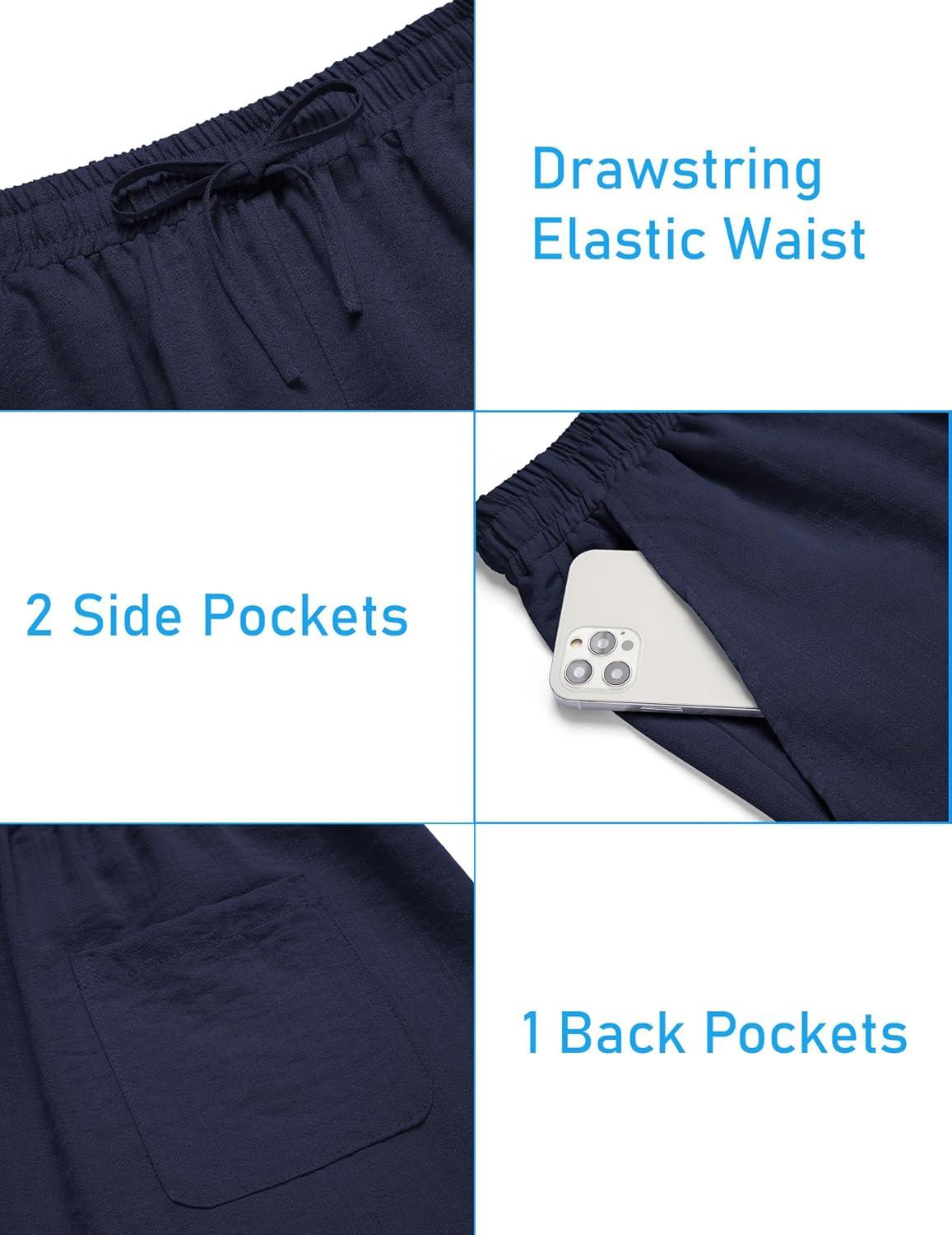 COOFANDY Men’s 2 Pieces Linen Set Henley Shirt Short Sleeve and Shorts Summer Beach Yoga Matching Outfits(Navy Blue)