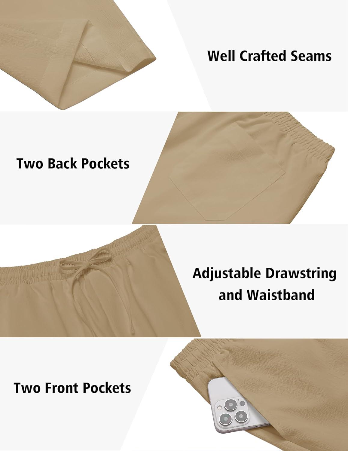 COOFANDY Men’s 2 Pieces Set Short Sleeve Casual Henley Shirts Beach Yoga Pants Summer Beach Outfit(Beige)