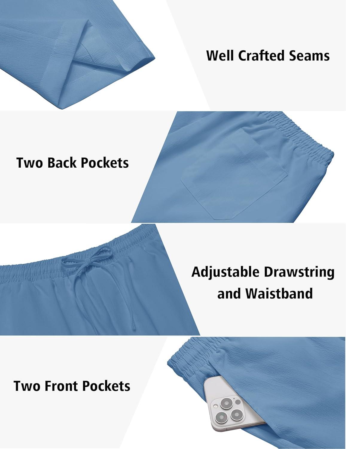 COOFANDY Men’s 2 Pieces Set Short Sleeve Casual Henley Shirts Beach Yoga Pants Summer Beach Outfit(Blue)