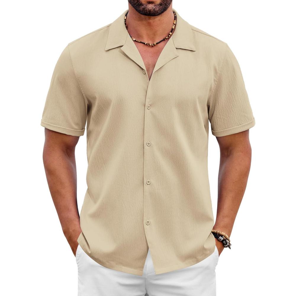 COOFANDY Mens 2025 Fashion Textured Shirts Short Sleeve Summer Beach Shirt Casual Button Down Shirts(Beige)