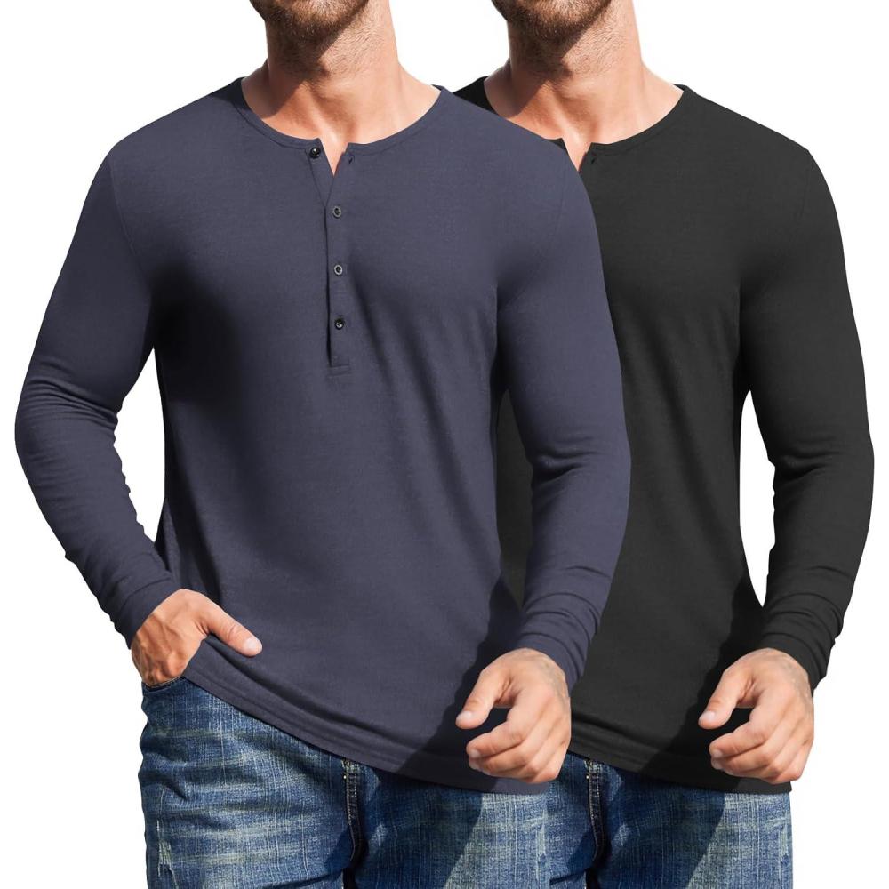 COOFANDY Men’s 2Pack Slim Fit Henley Shirts Long Sleeve Lightweight Fashion Casual Cotton Basic T Shirts(Black/Navy Blue)
