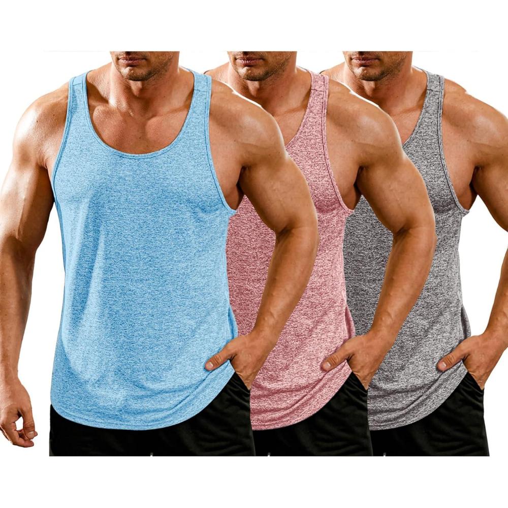 COOFANDY Men’s 3 Pack Gym Tank Tops Y-Back Workout Muscle Tee Training Bodybuilding Fitness Sleeveless T Shirts(3 Pack-light Grey/Blue/Light Red)