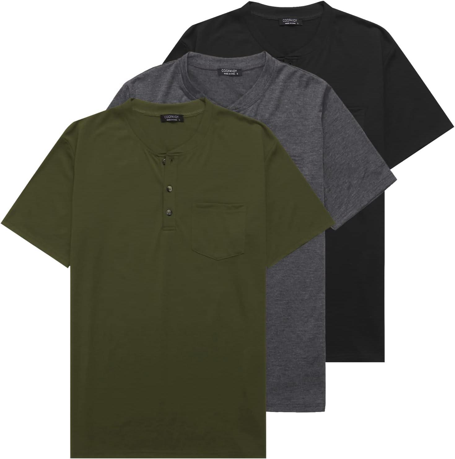COOFANDY Men’s 3 Pack Henley Shirts Short Sleeve Casual Basic Tees Classic Henley Summer Solid T Shirts with Pocket(01_army Green/Dark Gray/Black)