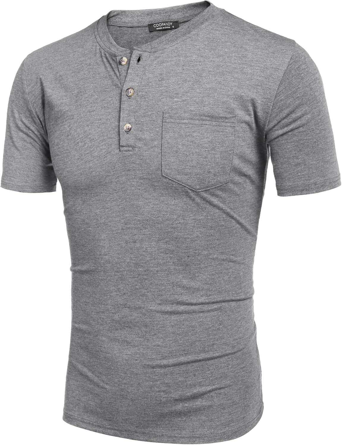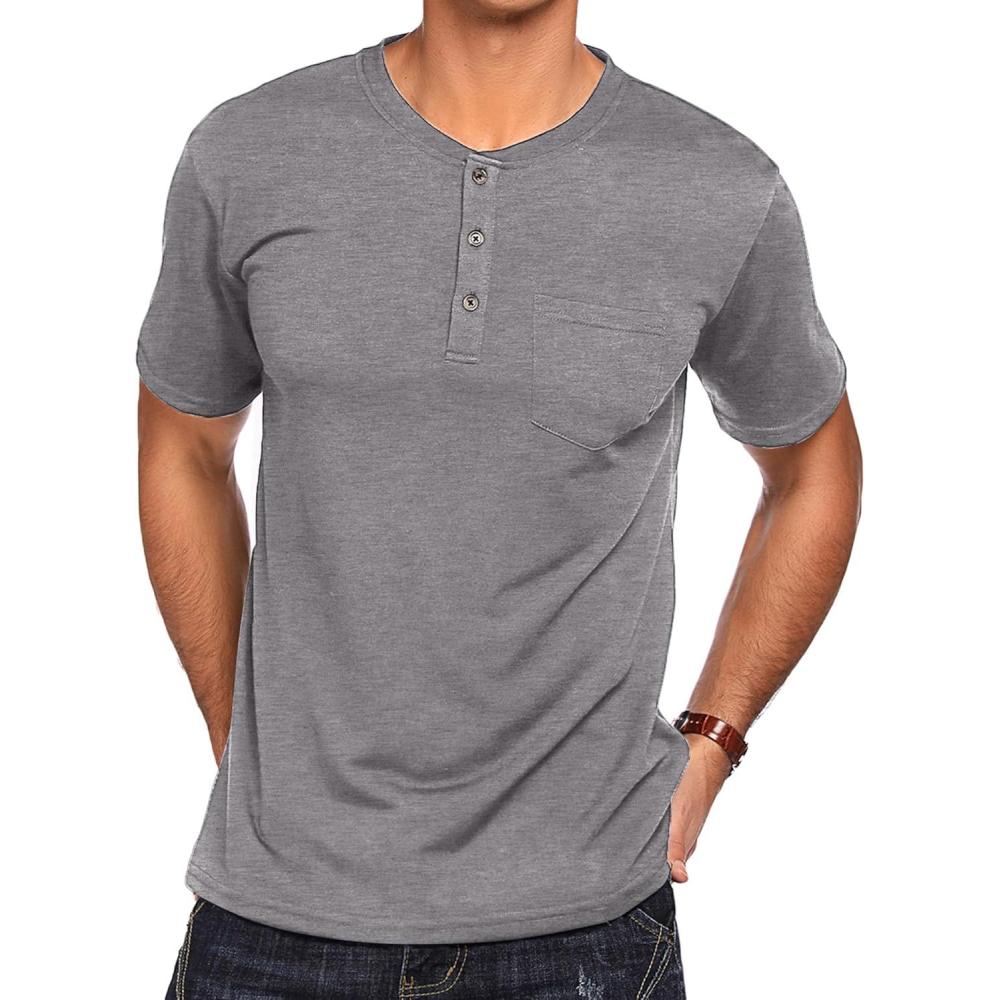 COOFANDY Men’s 3 Pack Henley Shirts Short Sleeve Casual Basic Tees Classic Henley Summer Solid T Shirts with Pocket(1 Pack: Dark Grey)