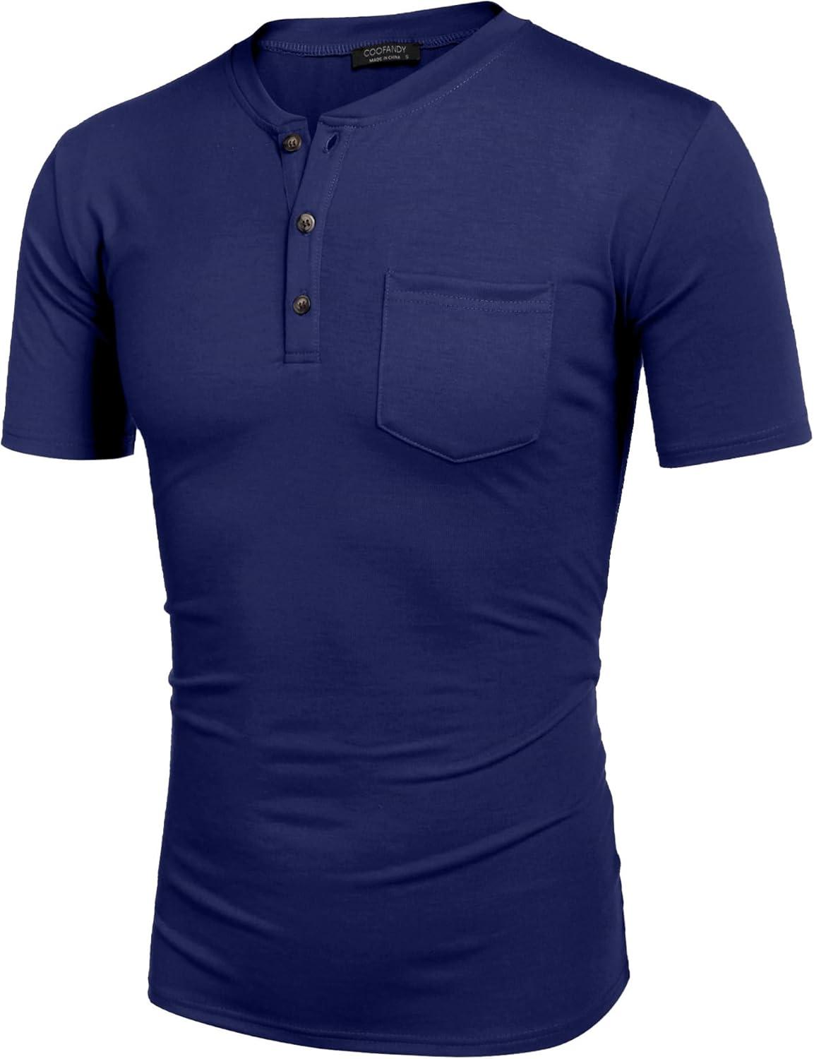 COOFANDY Men’s 3 Pack Henley Shirts Short Sleeve Casual Basic Tees Classic Henley Summer Solid T Shirts with Pocket(1 Pack: Navy Blue)