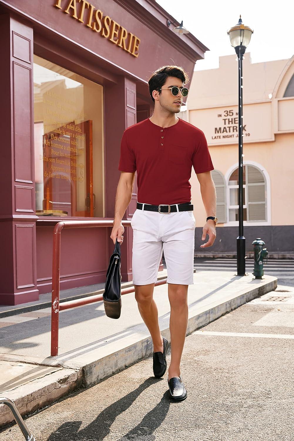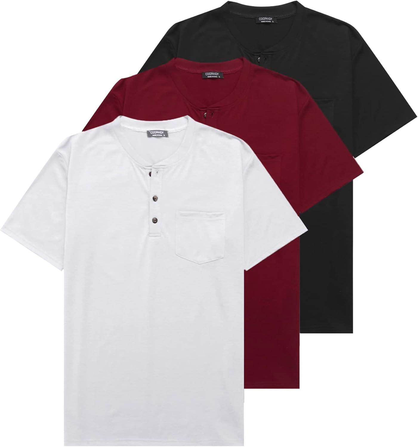 COOFANDY Men’s 3 Pack Henley Shirts Short Sleeve Casual Basic Tees Classic Henley Summer Solid T Shirts with Pocket(Black/White/Wine Red)