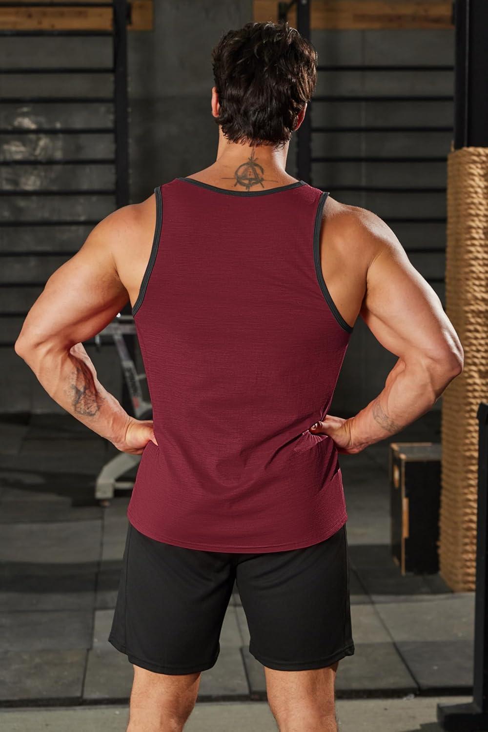 COOFANDY Men’s 3 Pack Tank Tops Cotton Performance Sleeveless Casual Classic T Shirts(Black/Dark Grey/Wine Red)