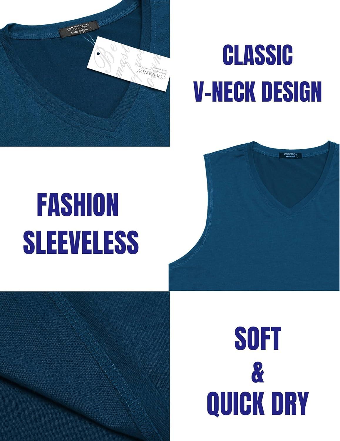 COOFANDY Men’s 3 Pack Workout Tank Tops Gym Sleeveless Shirts V Neck Bodybuilding Muscle Tee Shirt(01-blue/Dark Grey/Black)