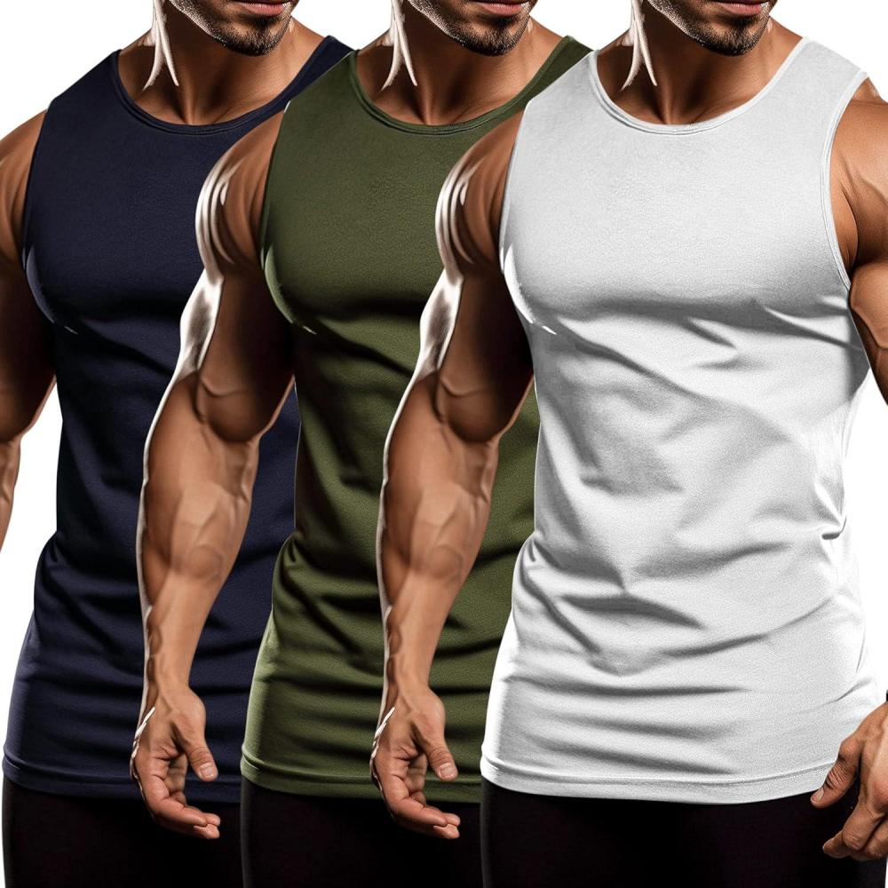 COOFANDY Men’s 3 Pack Workout Tank Tops Sleeveless Gym Shirts Bodybuilding Fitness Muscle Tee Shirts(Army Green/Navy Blue/White)