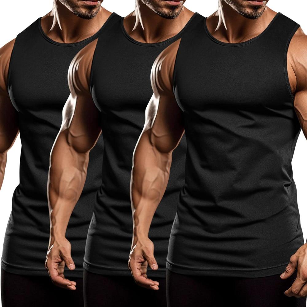 COOFANDY Men’s 3 Pack Workout Tank Tops Sleeveless Gym Shirts Bodybuilding Fitness Muscle Tee Shirts(Black*3)