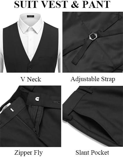 COOFANDY Men’s 3 Pieces Suits Classic Fit 2 Buttons Dress Suit Set Wedding Business Dinner Prom Jacket Vest Pants(Black)