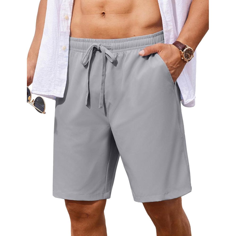 COOFANDY Men’s 7 inch Casual Shorts Drawstring Waist Lightweight Quick Dry Summer Beach Board Shorts with Pockets(Light Grey)