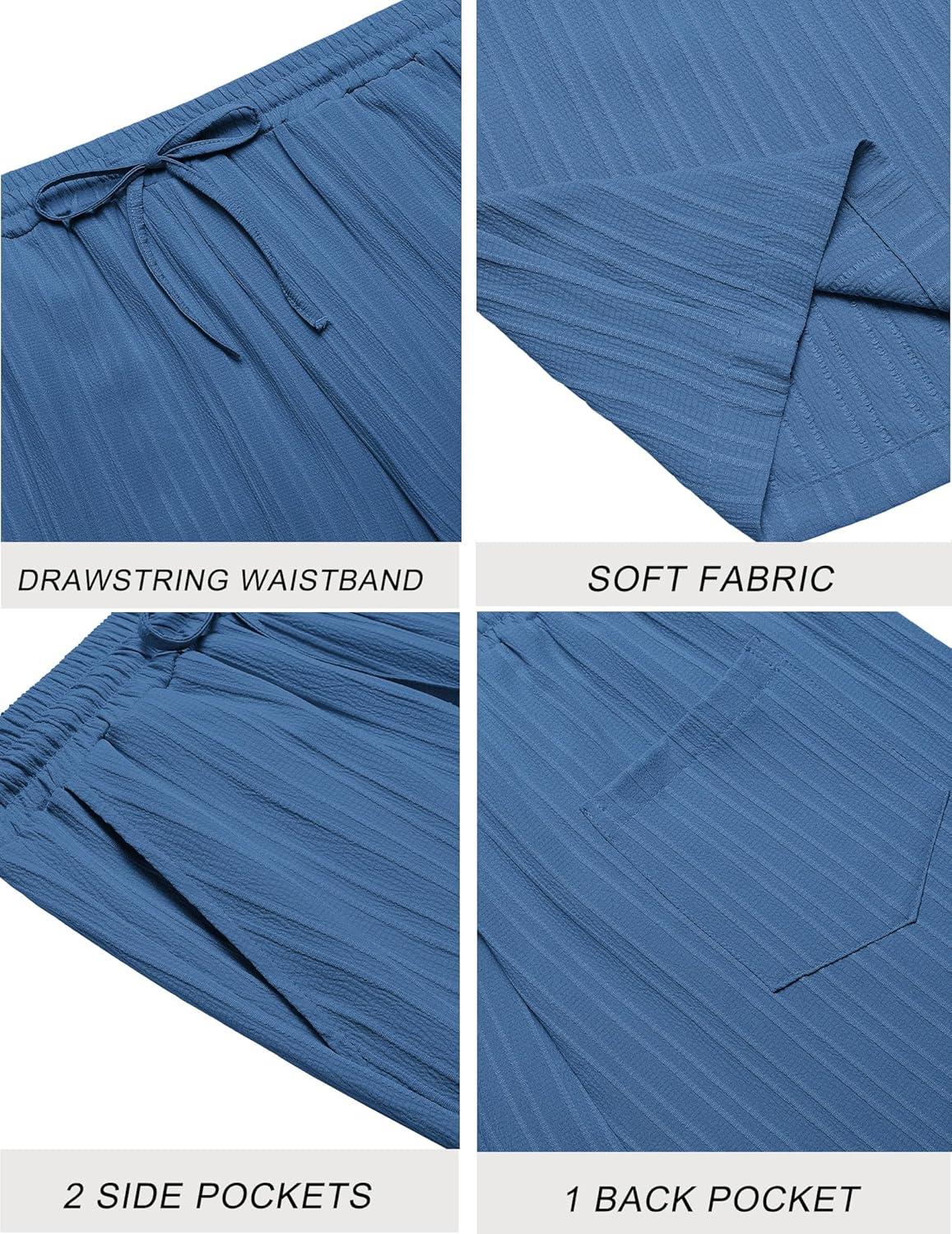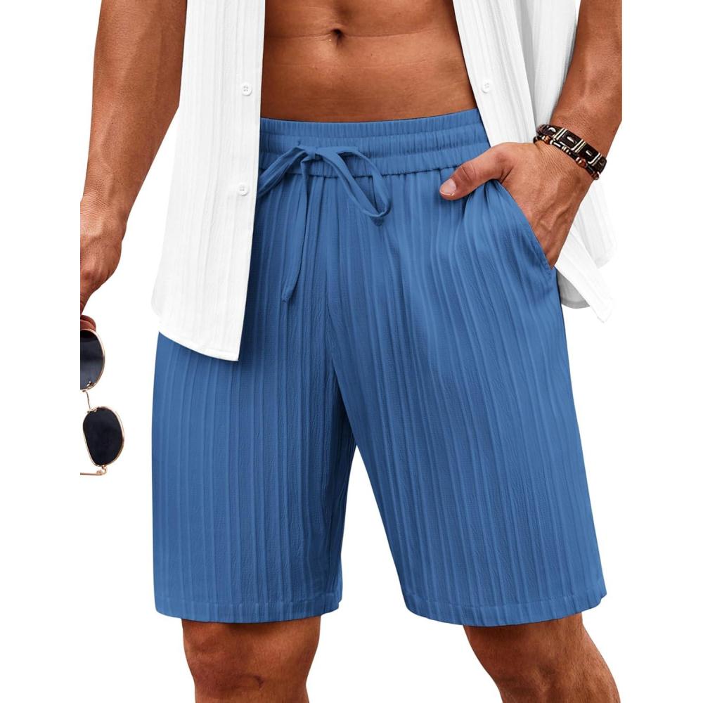 COOFANDY Men’s Beach Shorts 9″ Elastic Waist Drawstring Casual Shorts Regular Fit Summer Textured Shorts(Blue)