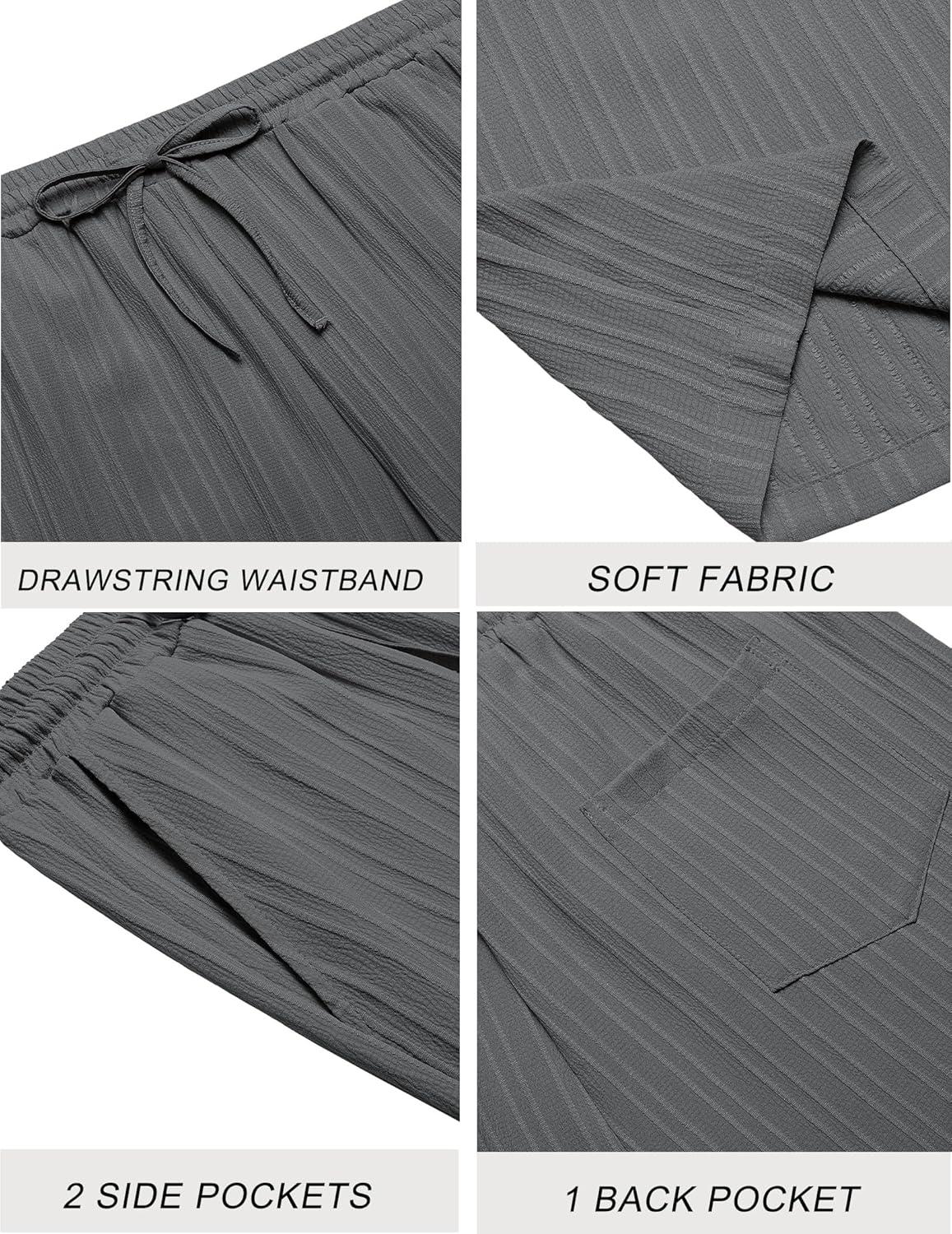 COOFANDY Men’s Beach Shorts 9″ Elastic Waist Drawstring Casual Shorts Regular Fit Summer Textured Shorts(Dark Grey)