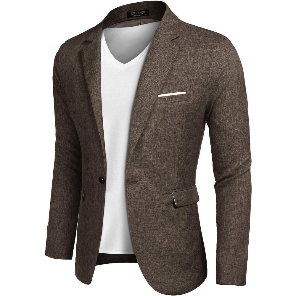 COOFANDY Men’s Blazer Casual Sport Coats Slim Fit One Button Suit Jacket Lightweight Sports Jacket(Brown)